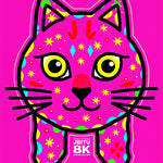 Festive Cat Outline with Twinkling Light Motif and Playful Charred Accents(Pink)