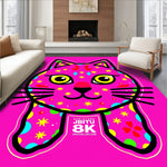 Ultra Soft Area Rug, Non Slip, Stain Resistant, Washable Area Rugs for Living Room, Bedroom, Festive Cat Outline with Twinkling Light Motif and Playful Charred Accents(Pink) Overview: