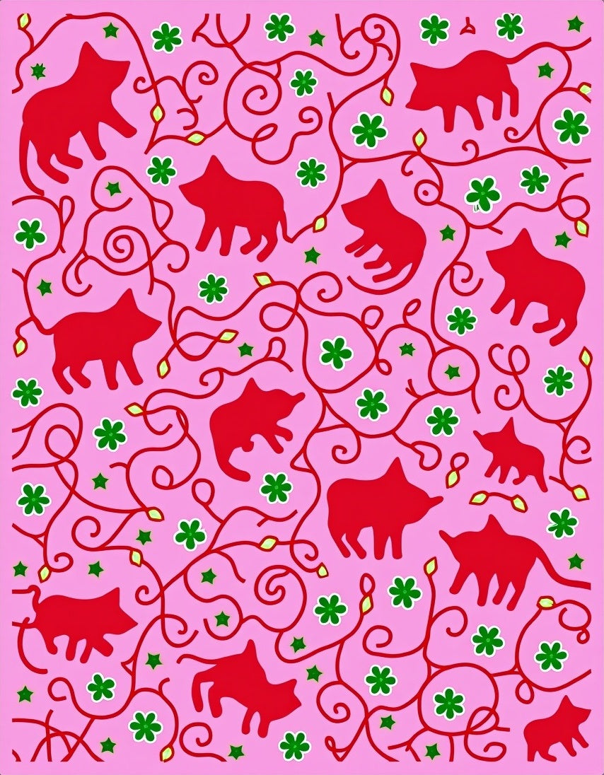 Festive Cat Silhouettes Featuring Twinkling Holiday Lights(Pink)