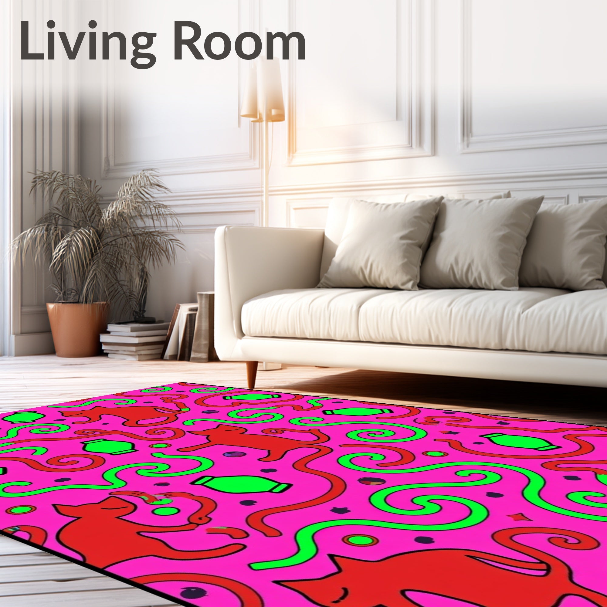 Ultra Soft Area Rug, Non Slip, Stain Resistant, Washable Area Rugs for Living Room, Bedroom, Festive Cat with Multicolored Light(Pink) Overview: