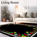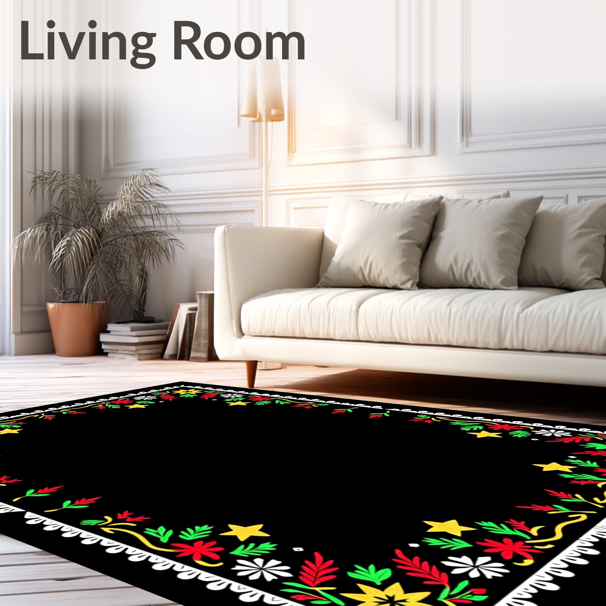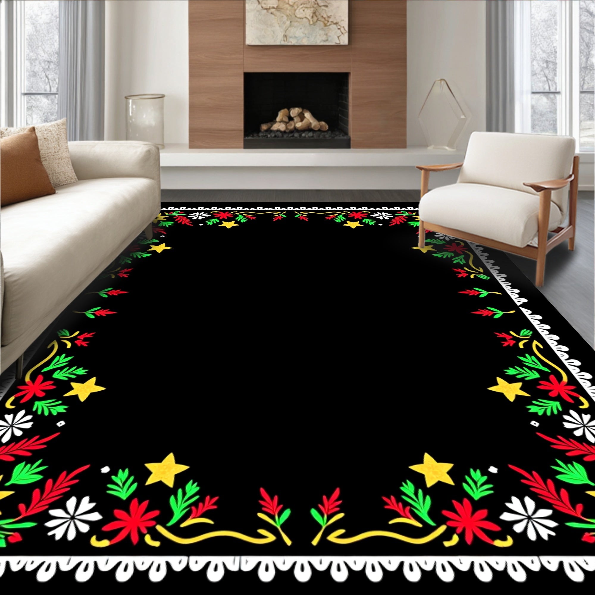 Ultra Soft Area Rug, Non Slip, Stain Resistant, Washable Area Rugs for Living Room, Bedroom, Festive Cat with Twinkling and Playful Motif(Black) Overview: