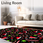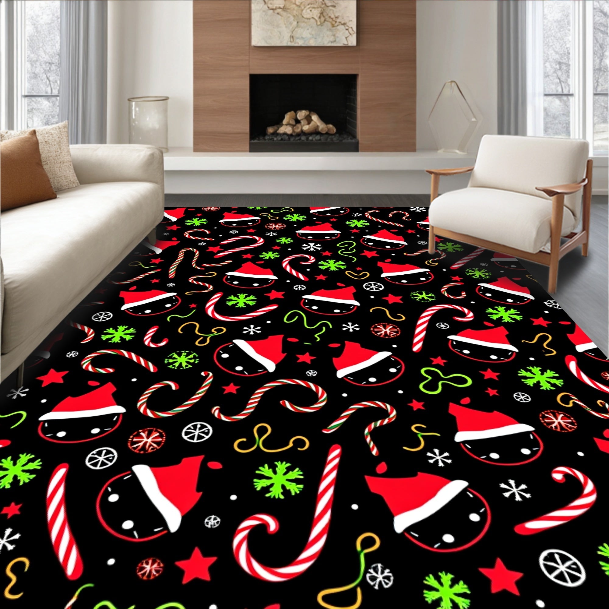 Ultra Soft Area Rug, Non Slip, Stain Resistant, Washable Area Rugs for Living Room, Bedroom, Festive Cats Illuminated with Whimsical Holiday Motifs and Twinkling Accents(Black) Overview: