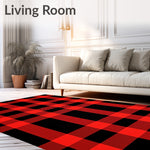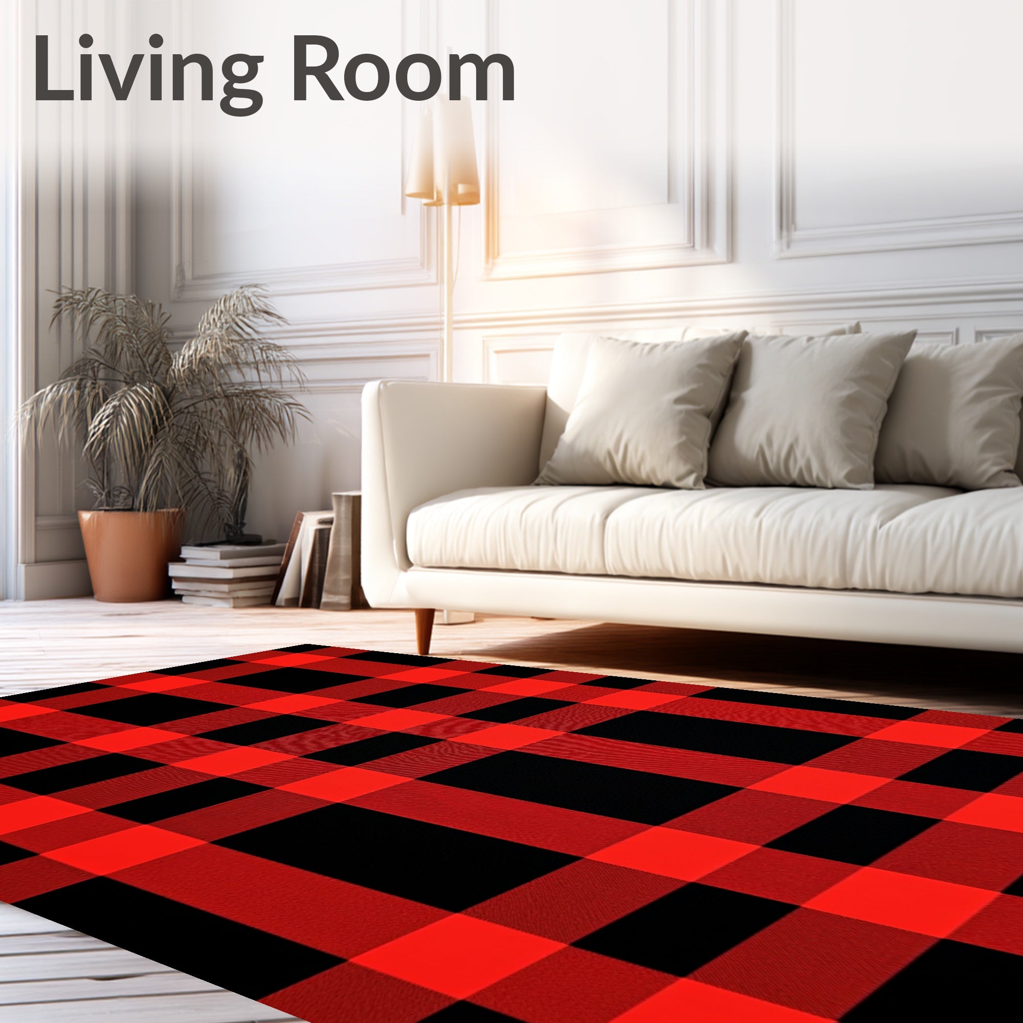 Ultra Soft Area Rug, Non Slip, Stain Resistant, Washable Area Rugs for Living Room, Bedroom, Festive Check with Classic Plaid Motifs(Red) Overview: