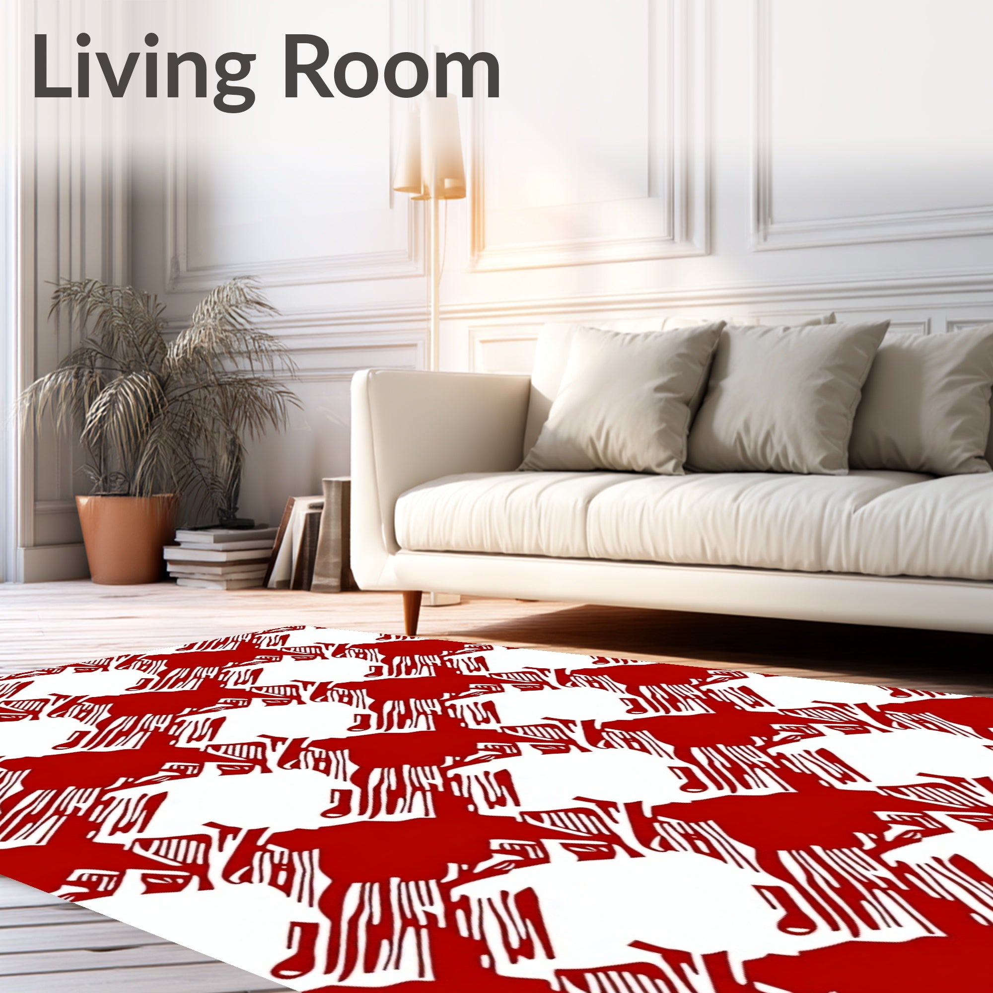 Ultra Soft Area Rug, Non Slip, Stain Resistant, Washable Area Rugs for Living Room, Bedroom, Festive Checkered Holiday Accent Layering(Red) Overview: