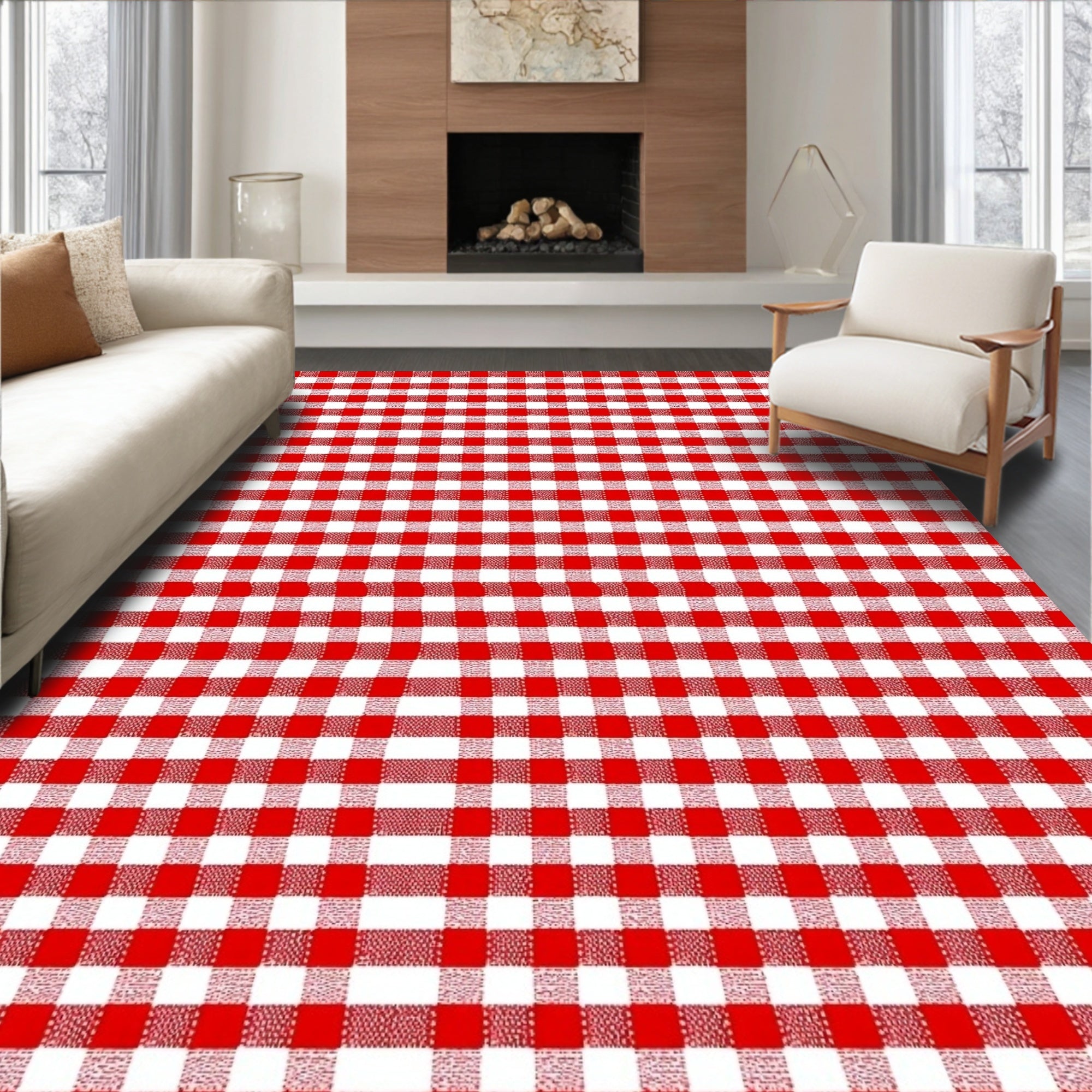 Ultra Soft Area Rug, Non Slip, Stain Resistant, Washable Area Rugs for Living Room, Bedroom, Festive Checkered Holiday with Traditional Gingham Design(Red) Overview: