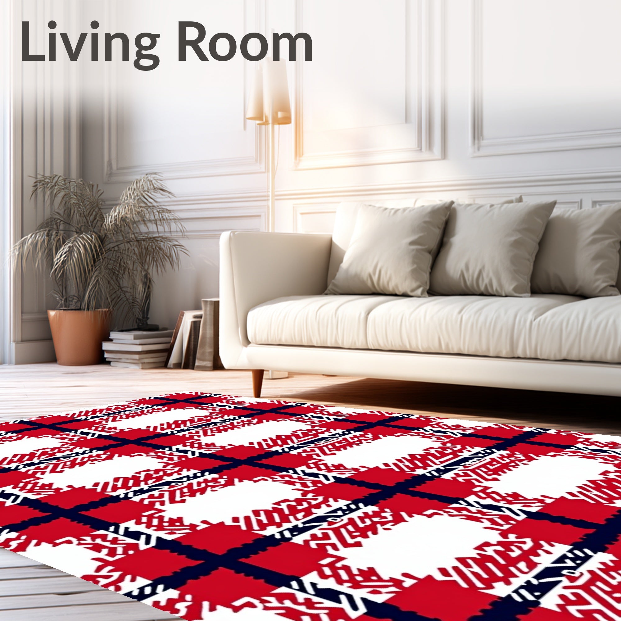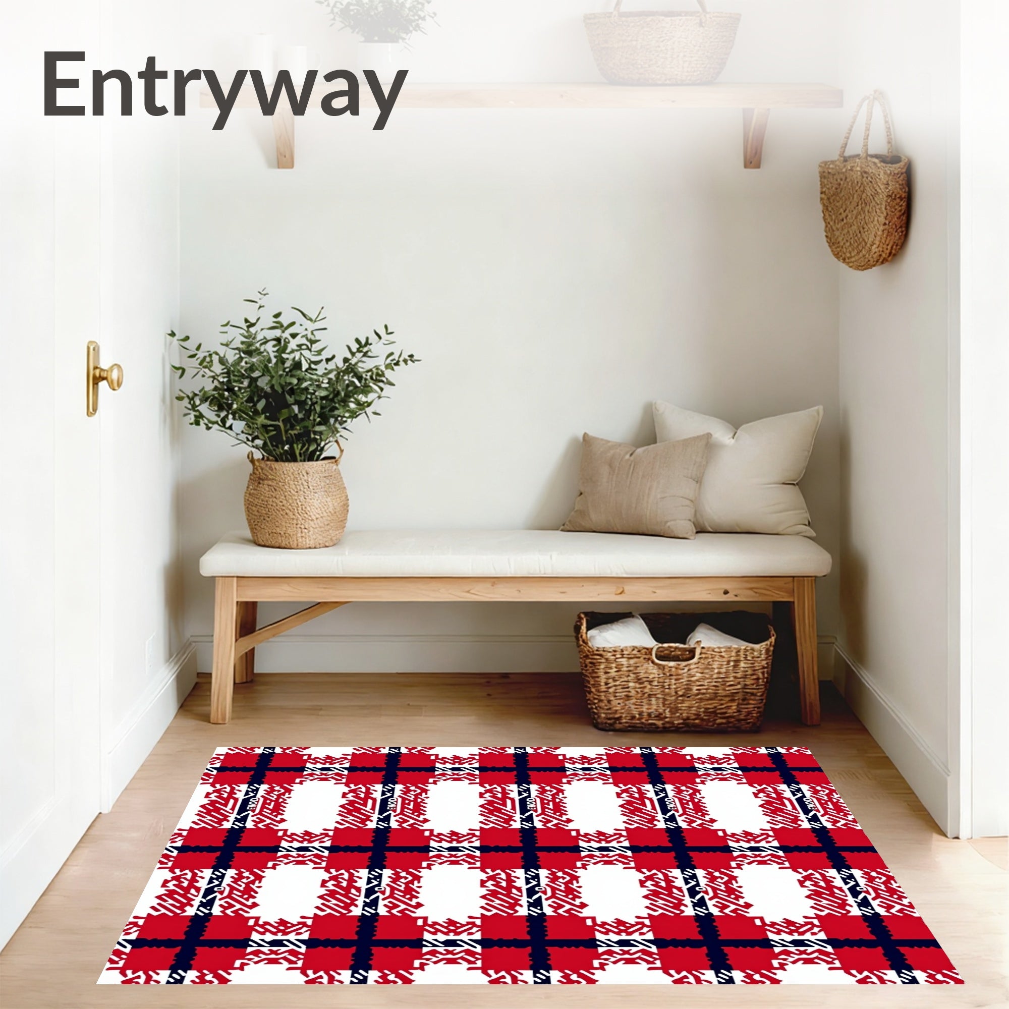 Flatwoven High Traffic Area Rug, Festive Checkered Plaid with Bold Contrasting Stripes, Non Slip, Stain Resistant, Washable Area Rugs for Living Room, Bedroom (Red) Overview: