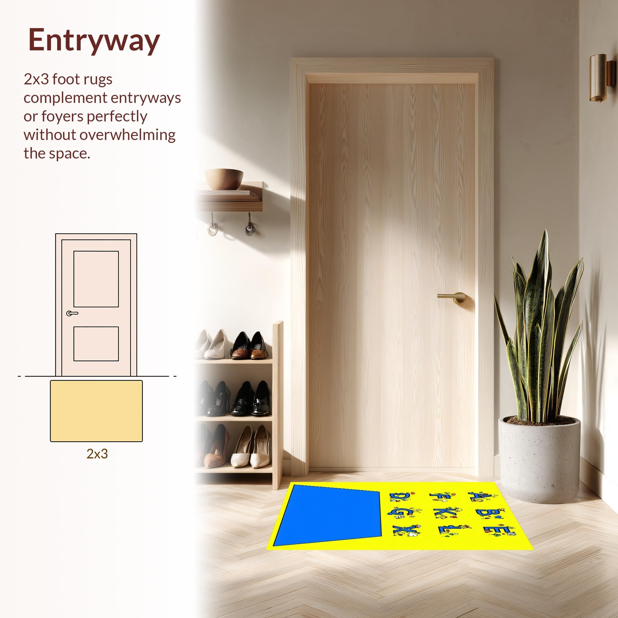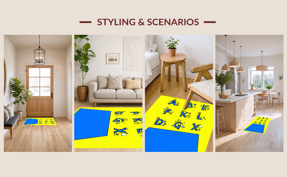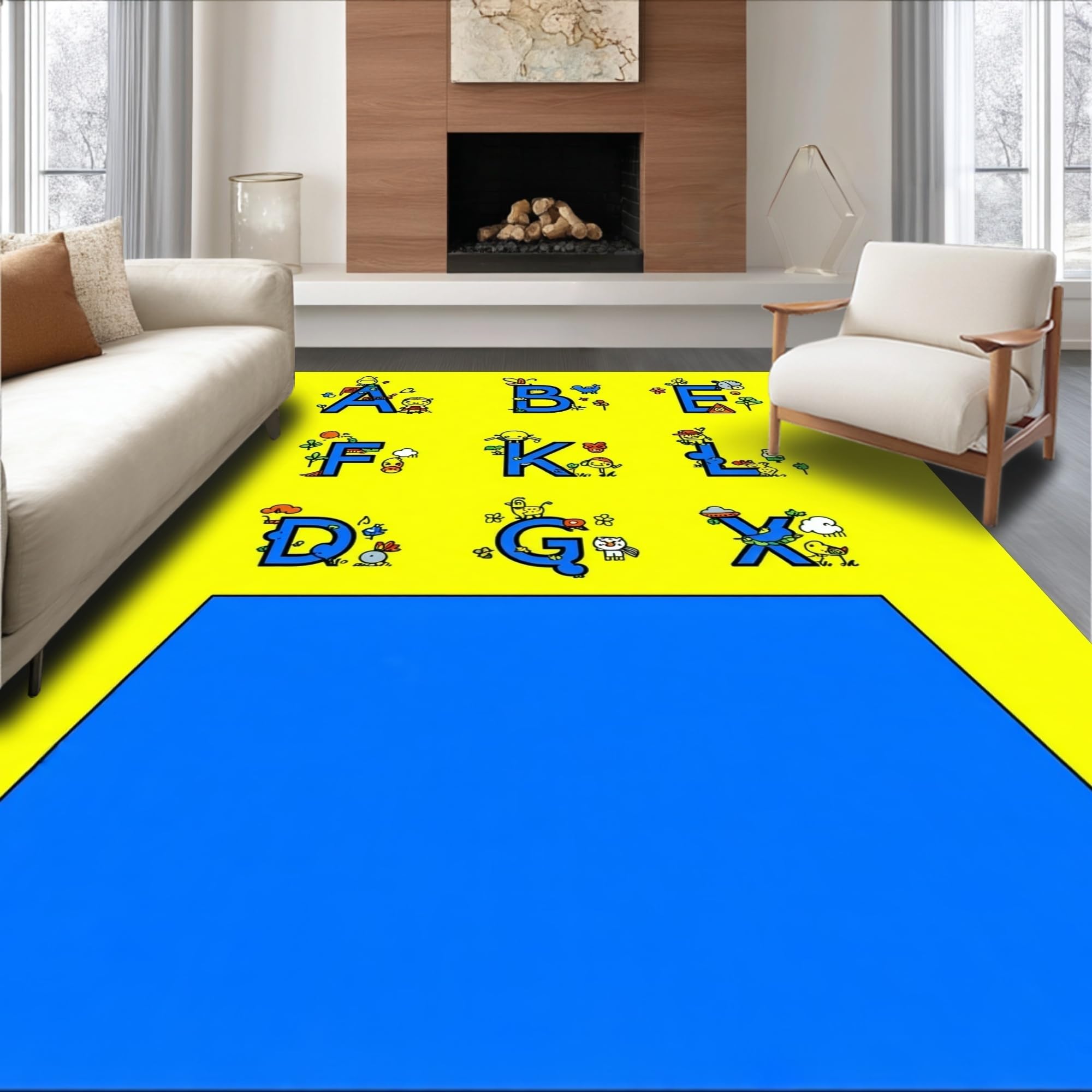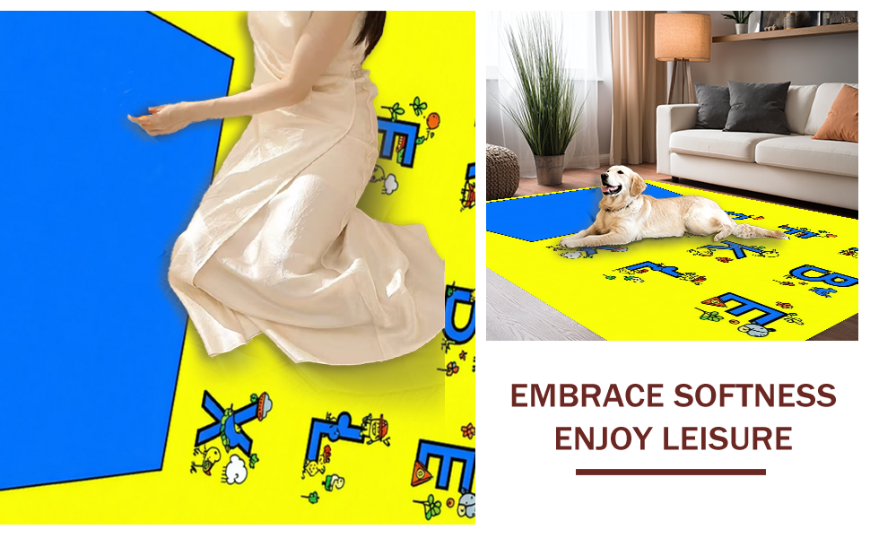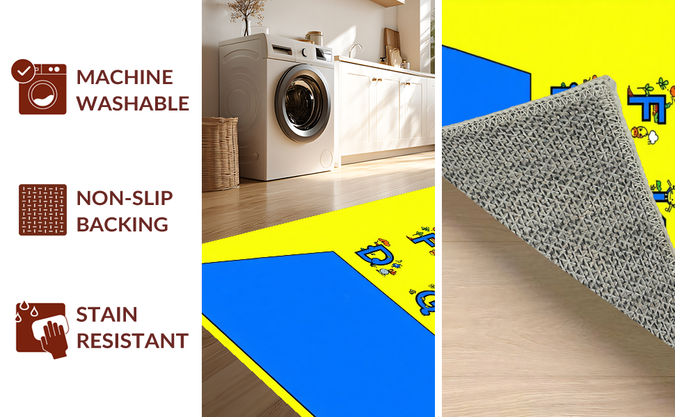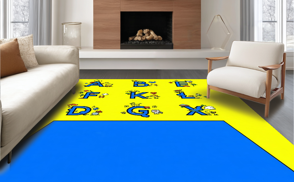 Ultra Soft Area Rug, Non Slip, Stain Resistant, Washable Area Rugs for Living Room, Bedroom, Festive Colorful Playful Design Elements(Yellow) Overview: