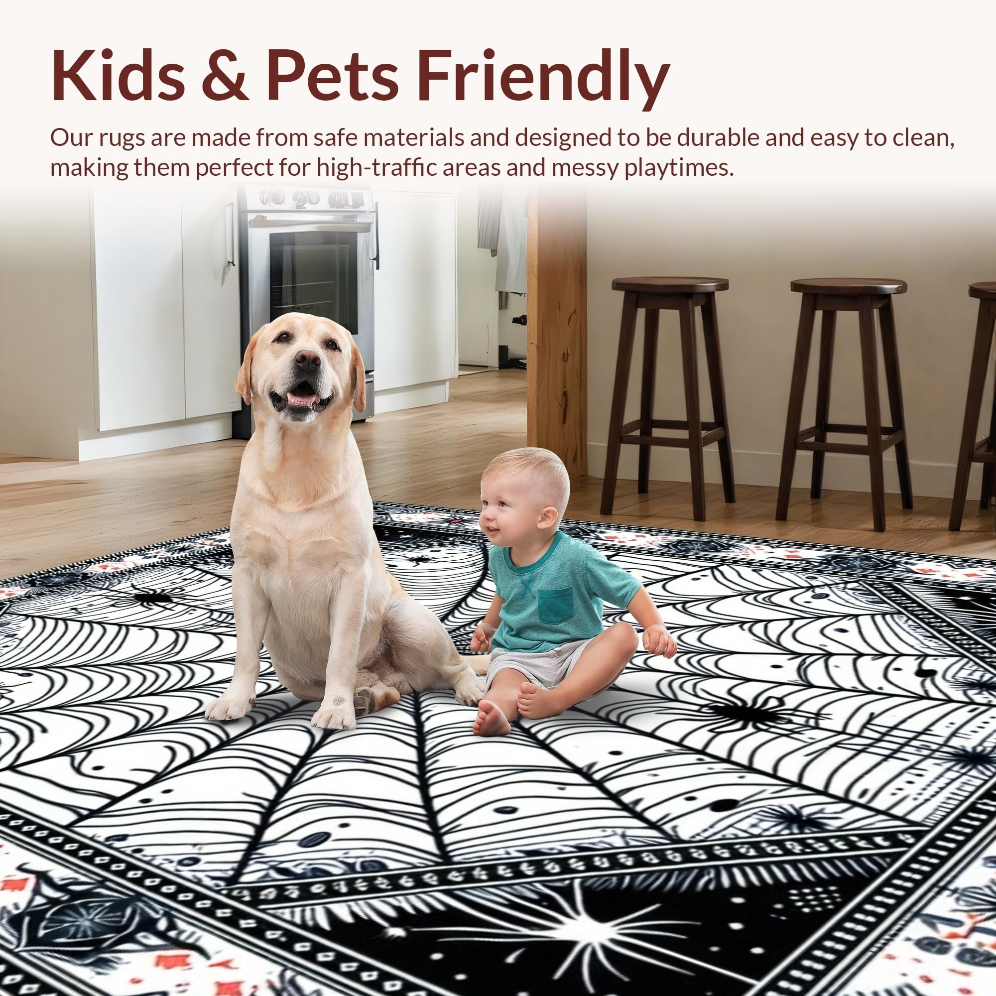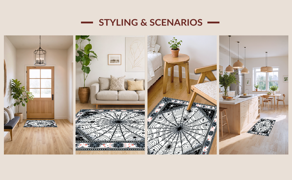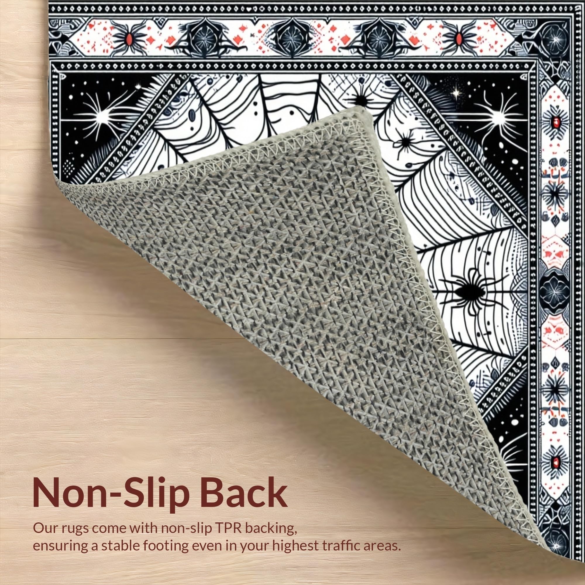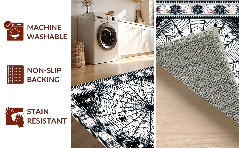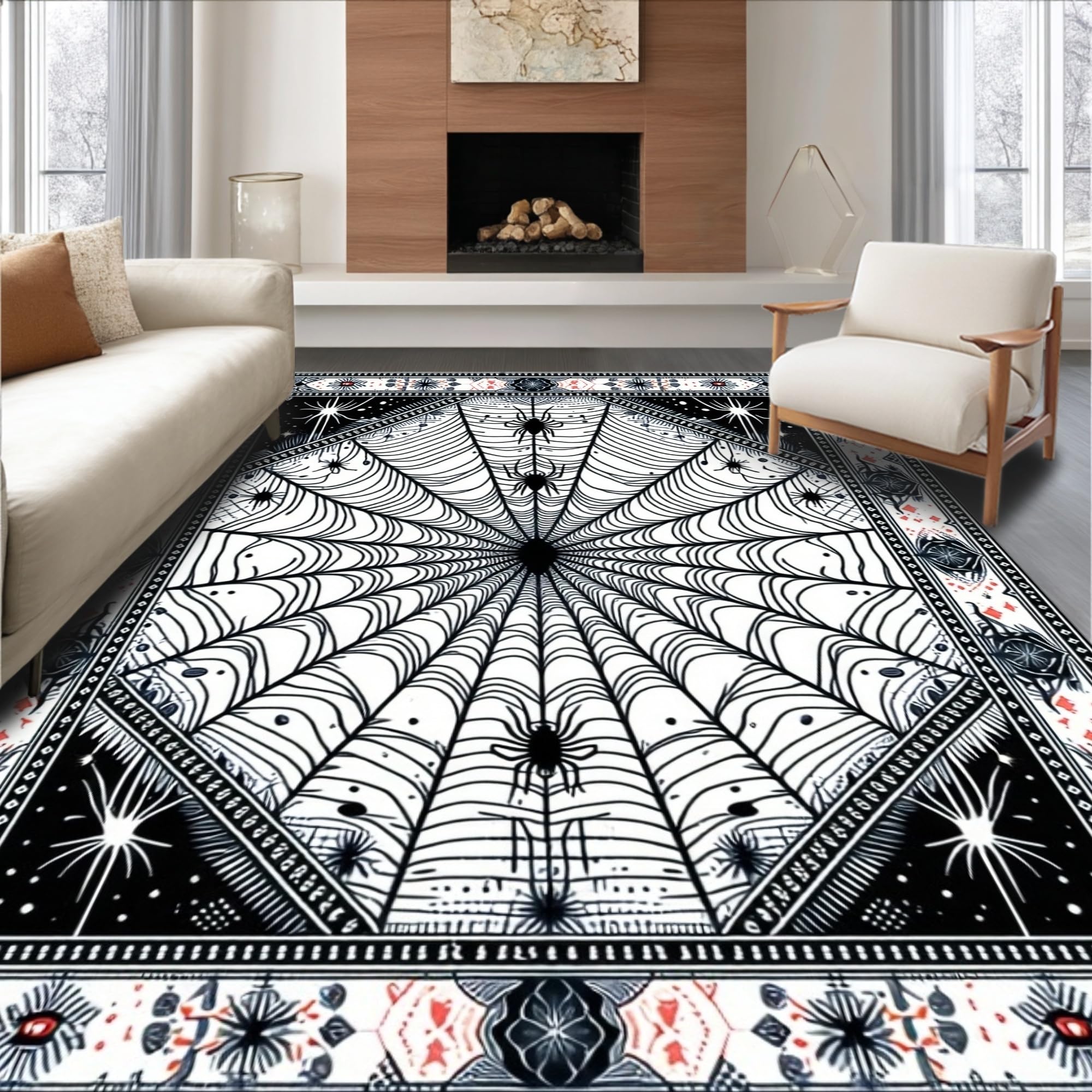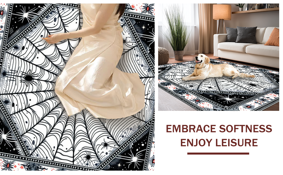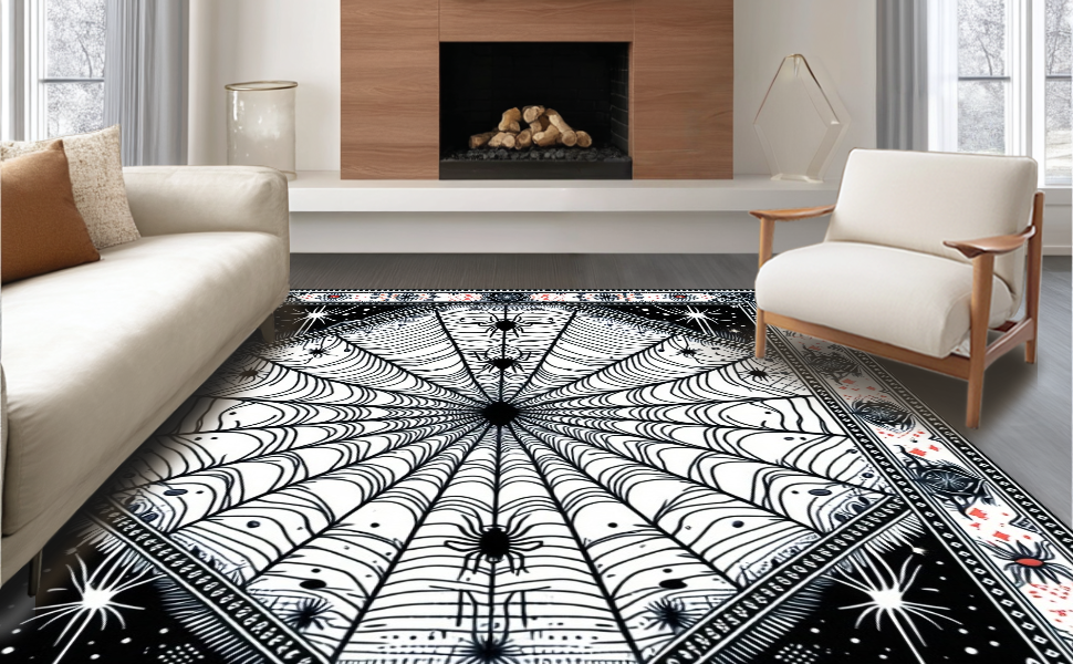 Ultra Soft Area Rug, Non Slip, Stain Resistant, Washable Area Rugs for Living Room, Bedroom, Festive Colorful Spider Theme(Black) Overview: