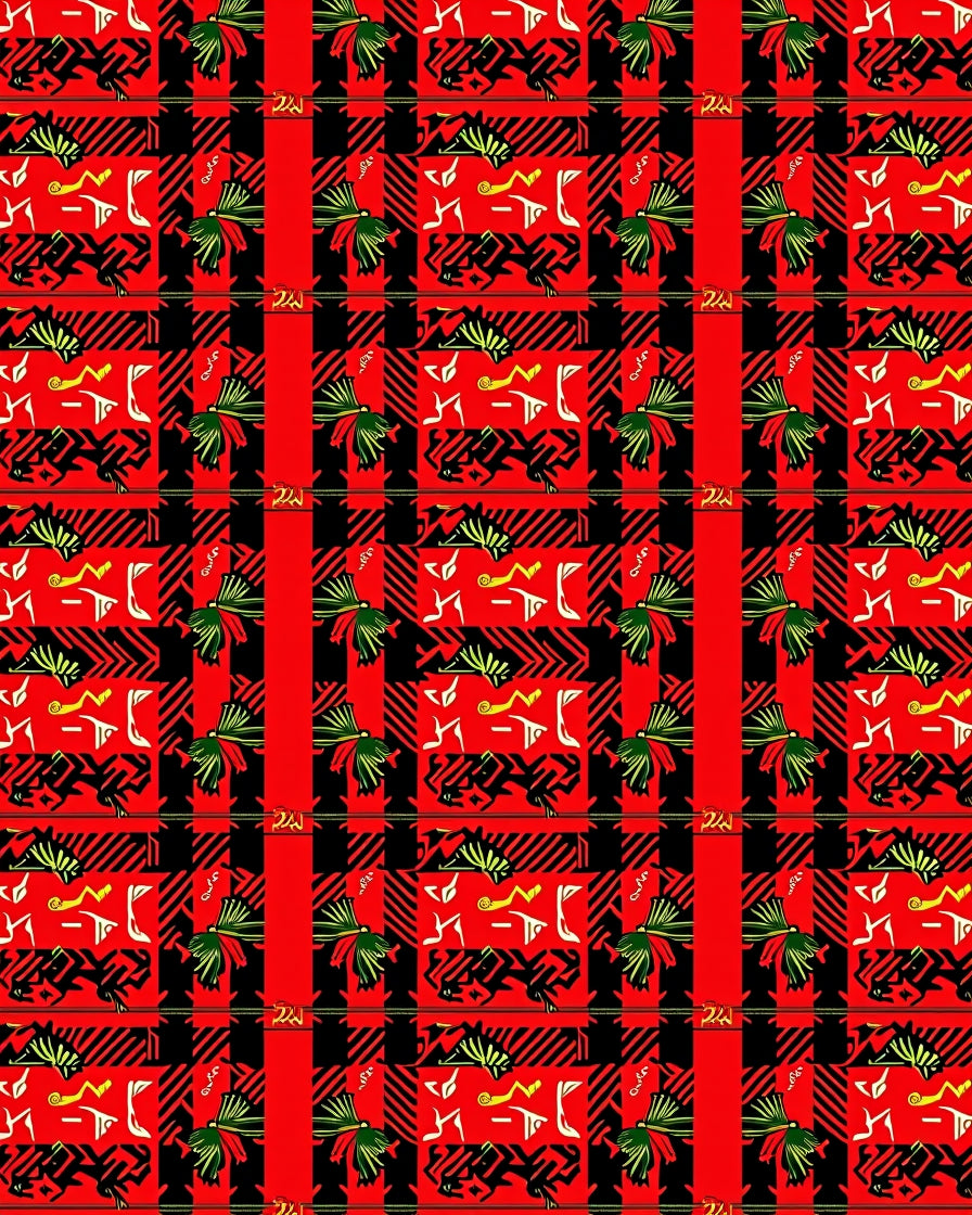 Festive Entry Plaid with Evergreen Branch Detailing(Red)