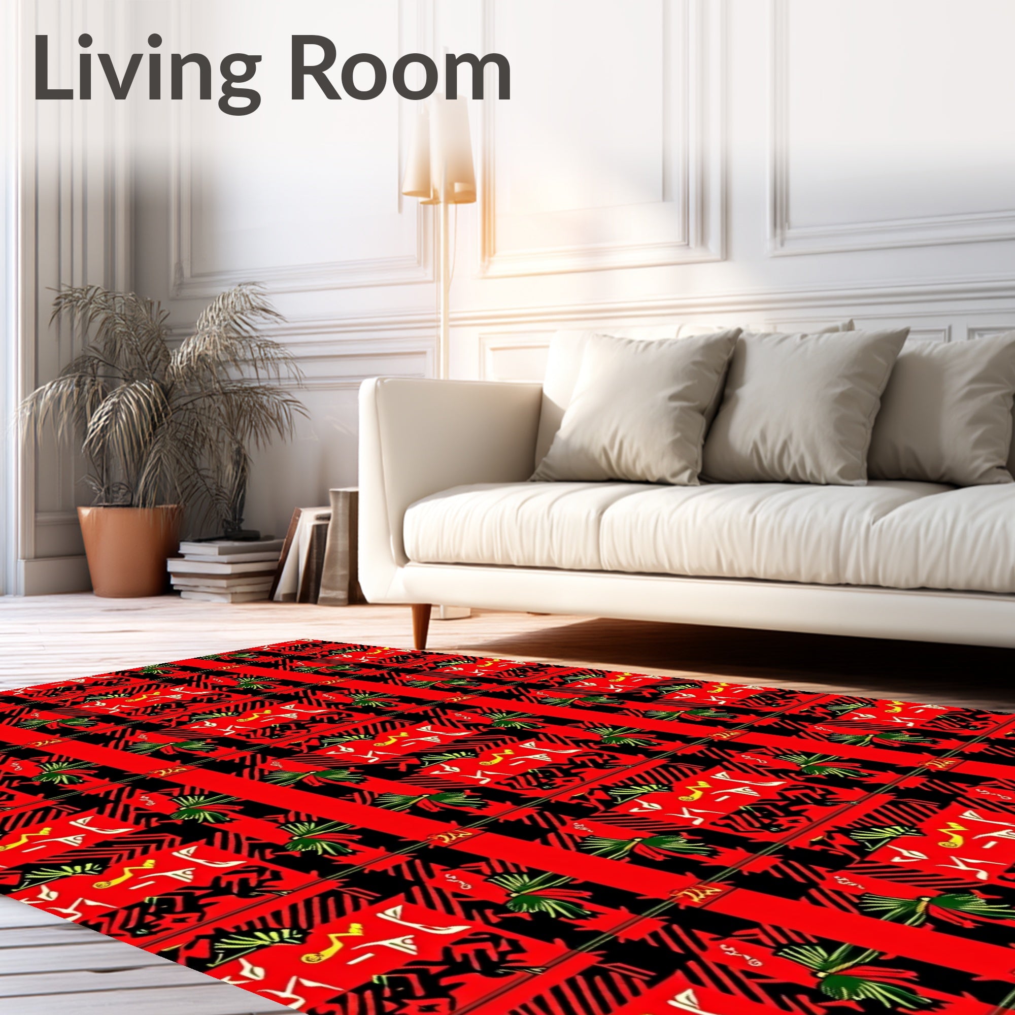 Ultra Soft Area Rug, Non Slip, Stain Resistant, Washable Area Rugs for Living Room, Bedroom, Festive Entry Plaid with Evergreen Branch Detailing(Red) Overview: