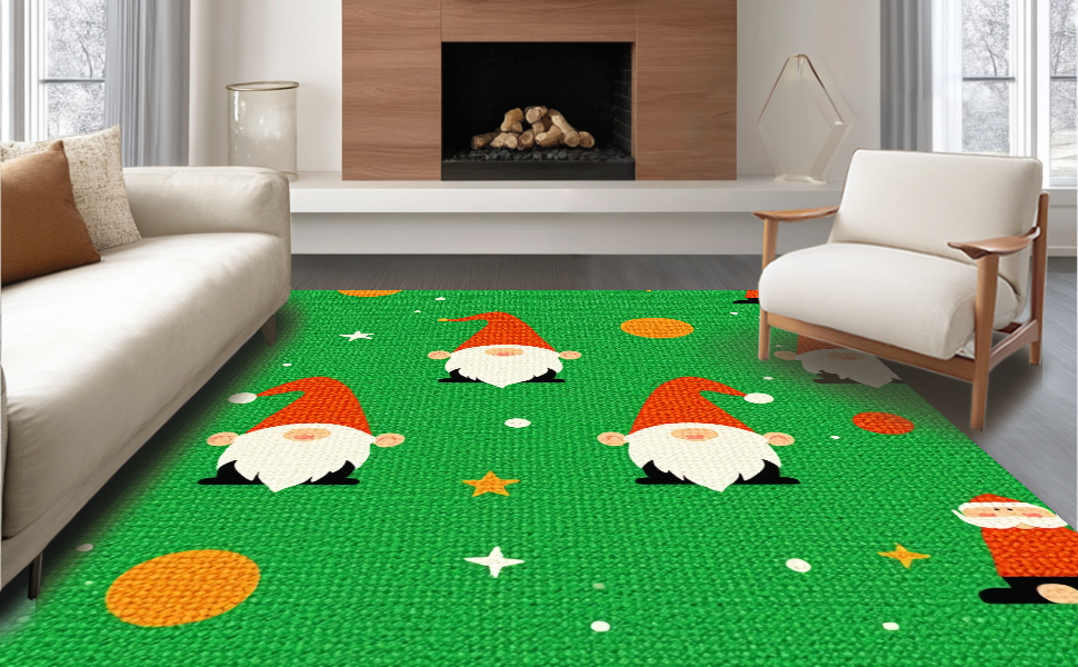 Ultra Soft Area Rug, Non Slip, Stain Resistant, Washable Area Rugs for Living Room, Bedroom, Festive Ethnic Pattern with Orange(Green) Overview: