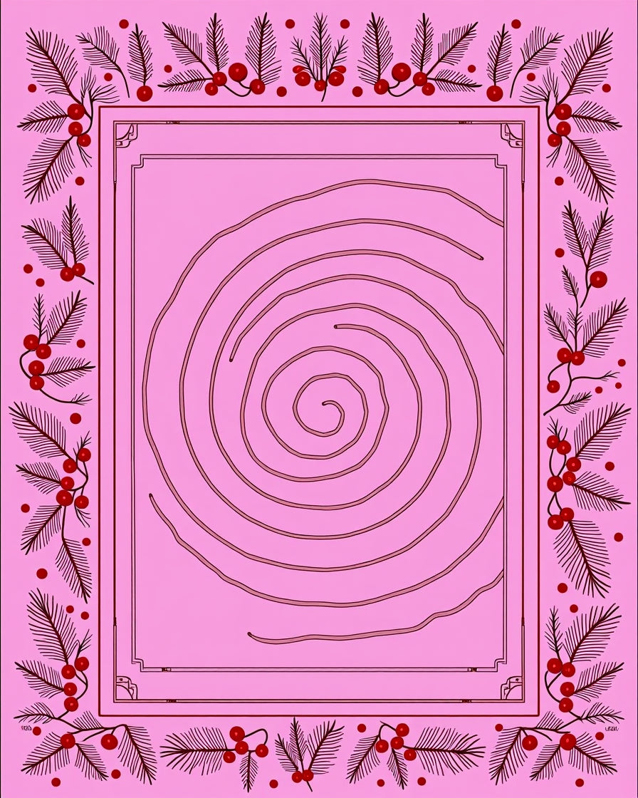 Festive Evergreen Delight with Holly Leaf Flourish(Pink)