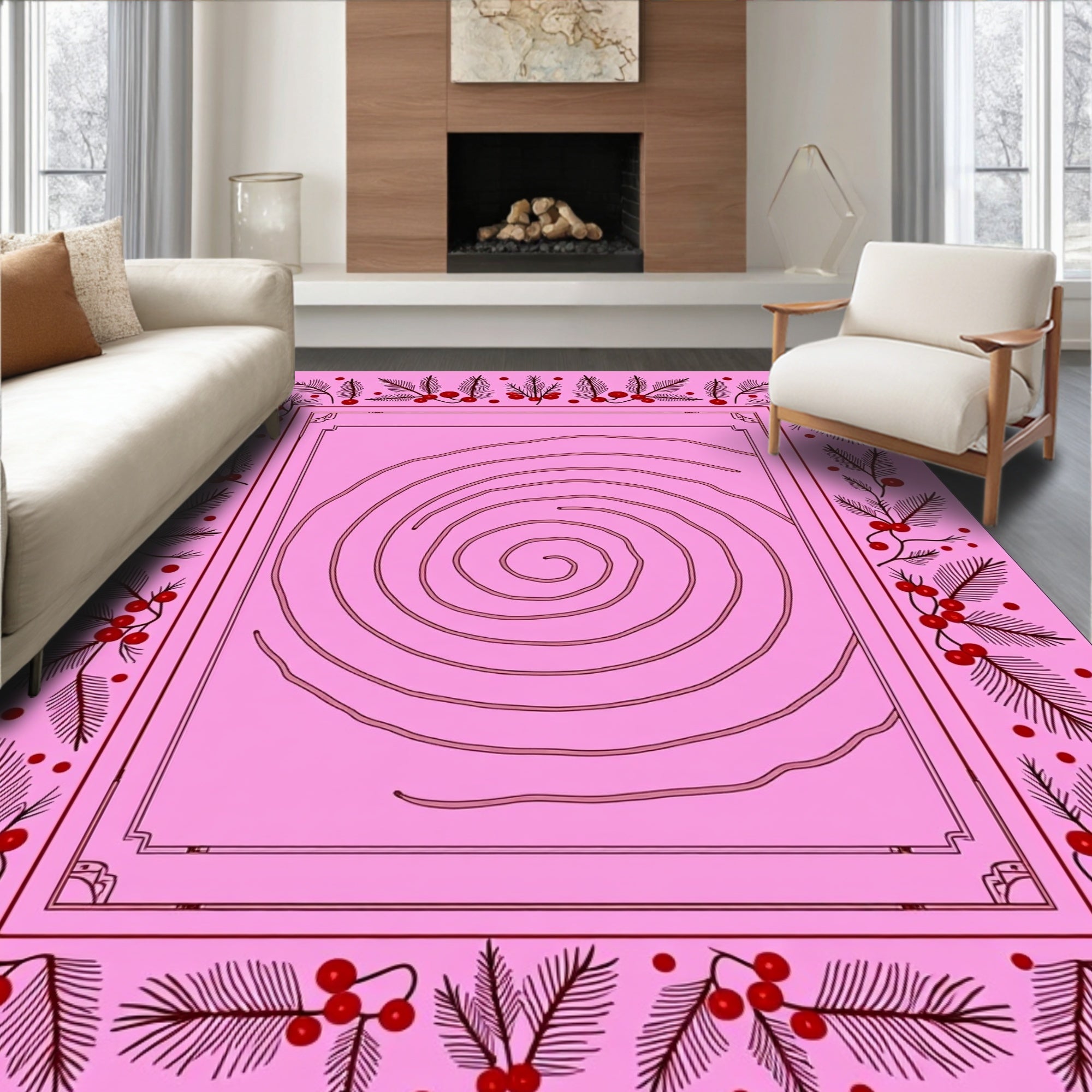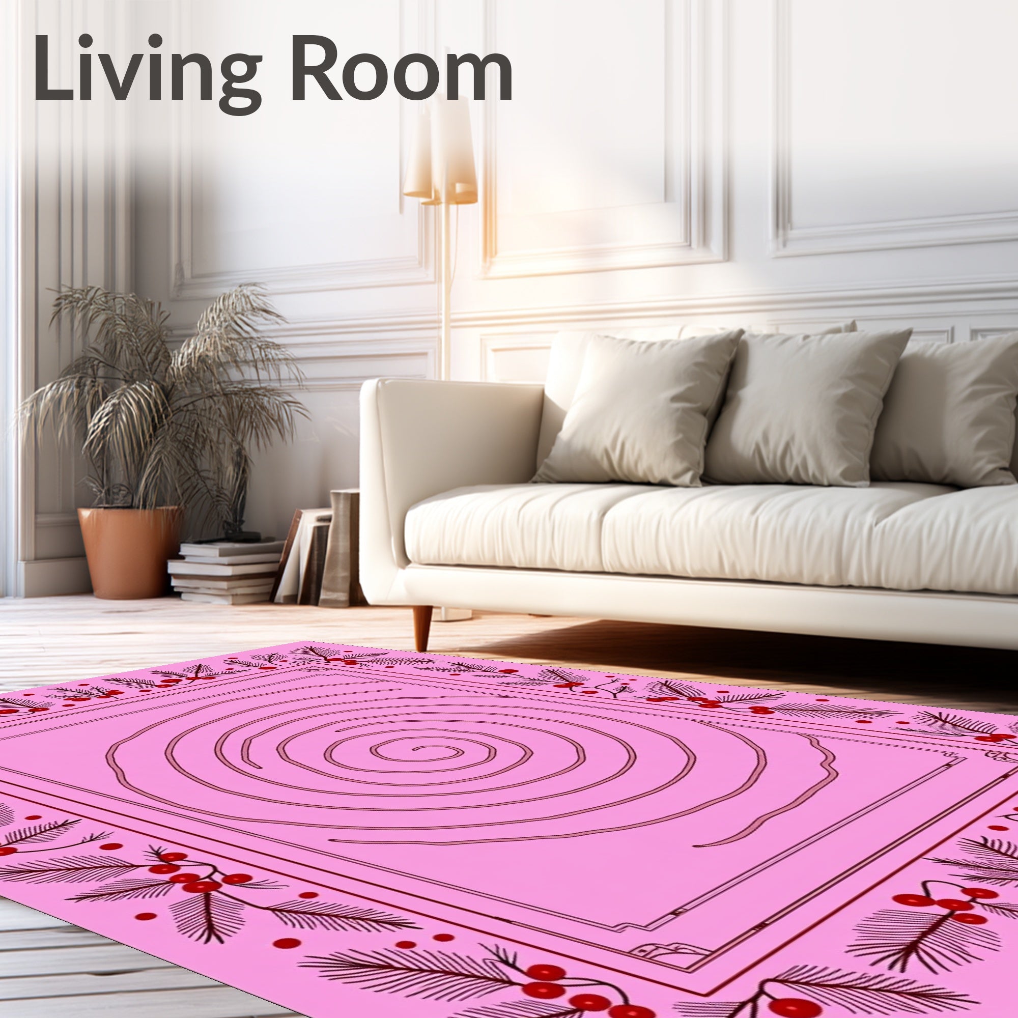 Ultra Soft Area Rug, Non Slip, Stain Resistant, Washable Area Rugs for Living Room, Bedroom, Festive Evergreen Delight with Holly Leaf Flourish(Pink) Overview:
