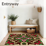 Ultra Soft Area Rug, Non Slip, Stain Resistant, Washable Area Rugs for Living Room, Bedroom, Festive Evergreen Foliage Medallion Scrollwork Patterned Holiday(Brown) Overview: