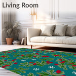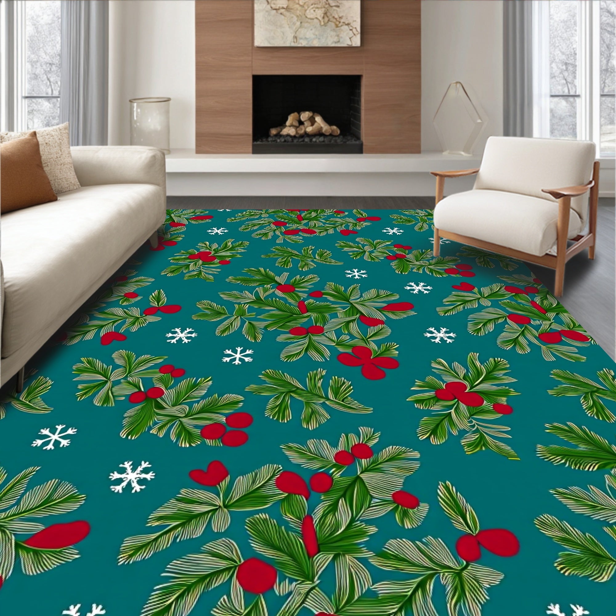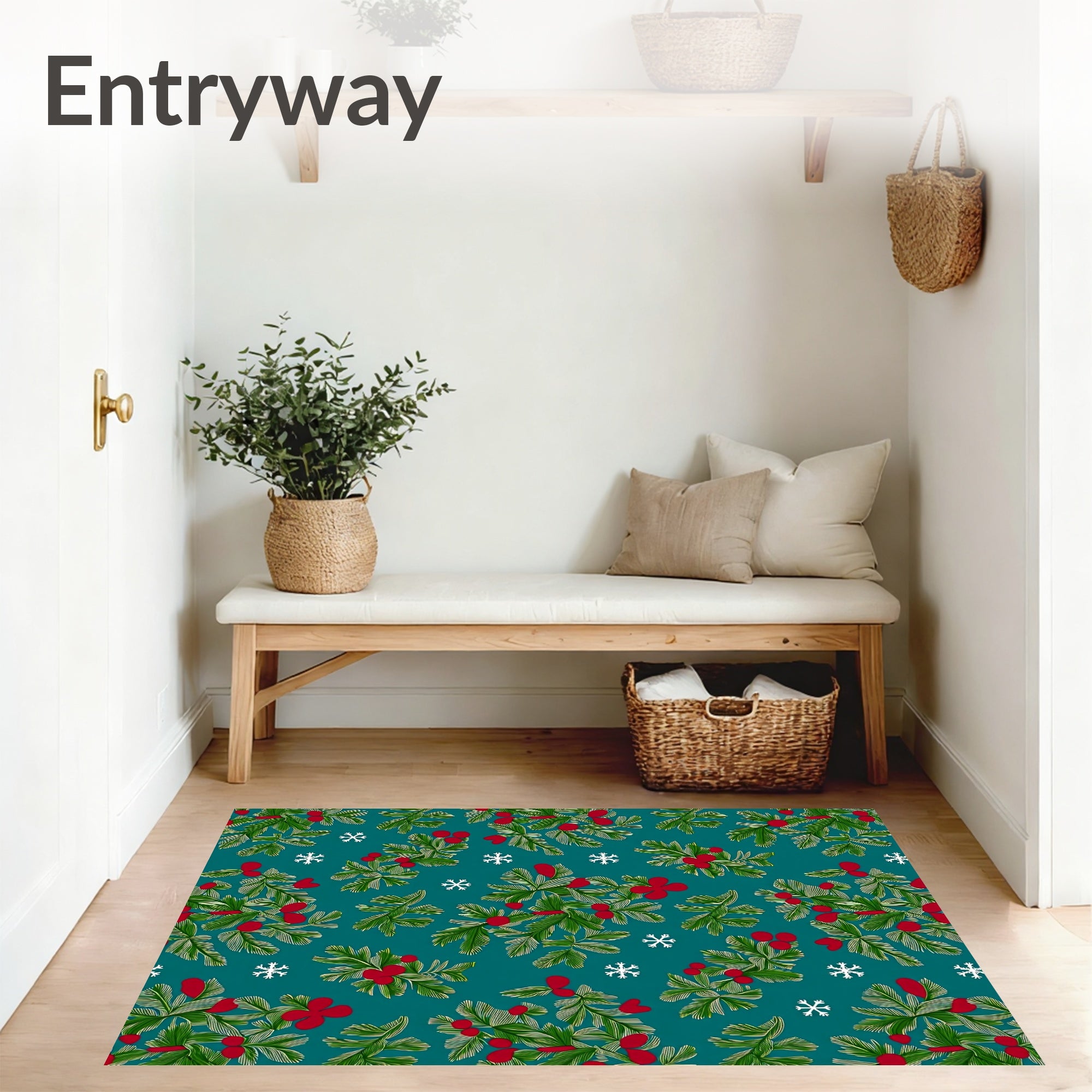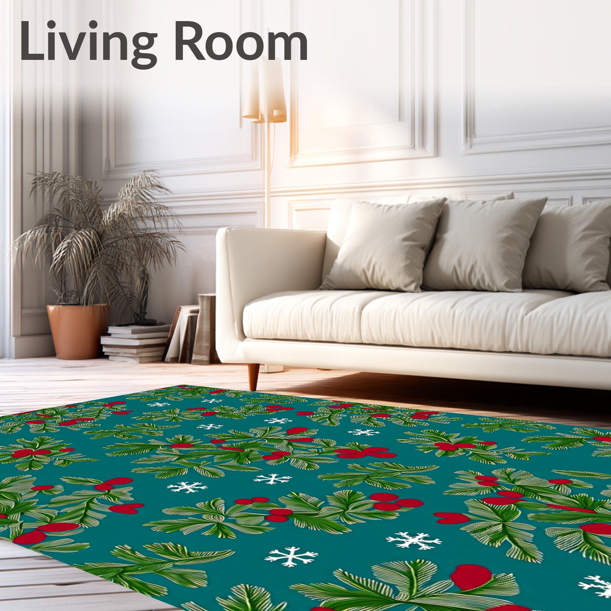 Ultra Soft Area Rug, Non Slip, Stain Resistant, Washable Area Rugs for Living Room, Bedroom, Festive Evergreen Holiday Entrance Welcoming(Teal) Overview: