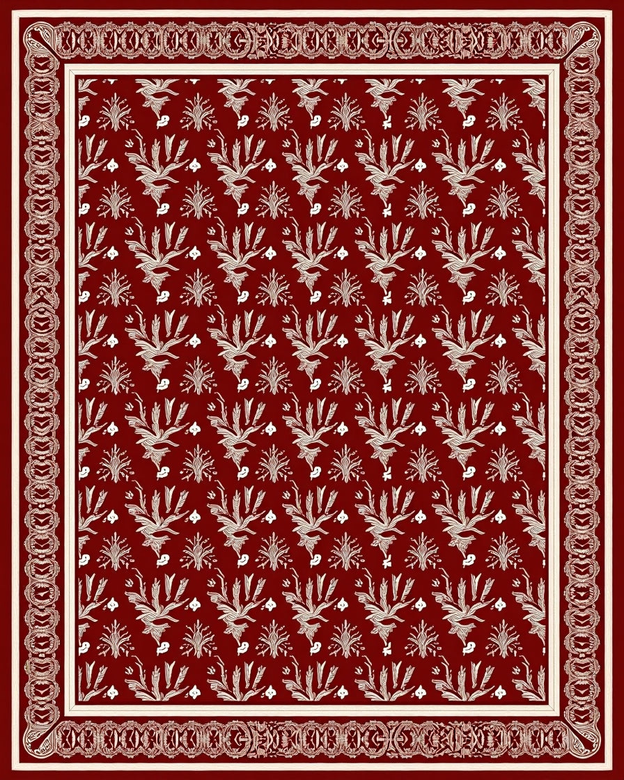 Festive Evergreen Tapestry With Snowy Branch Motif(Red)