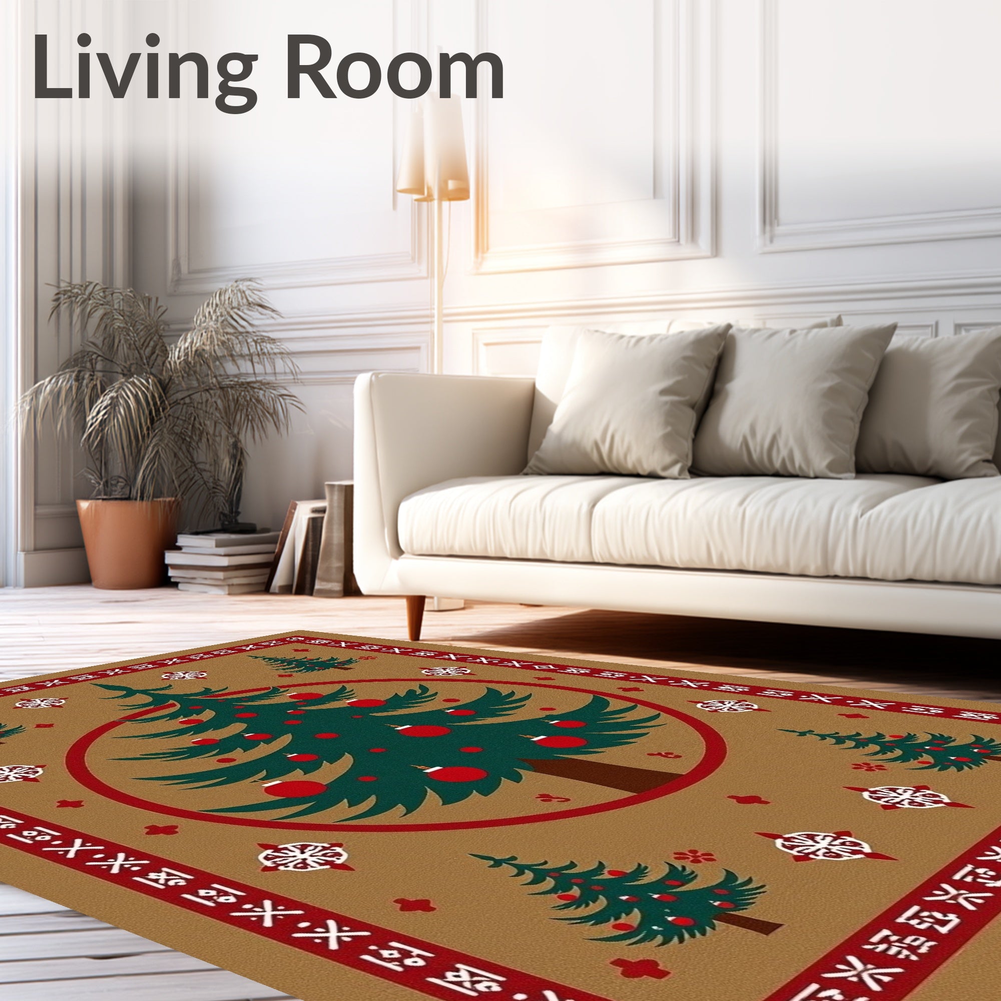 Ultra Soft Area Rug, Non Slip, Stain Resistant, Washable Area Rugs for Living Room, Bedroom, Festive Evergreen Xmas Tree Decorative Floor(Brown) Overview: