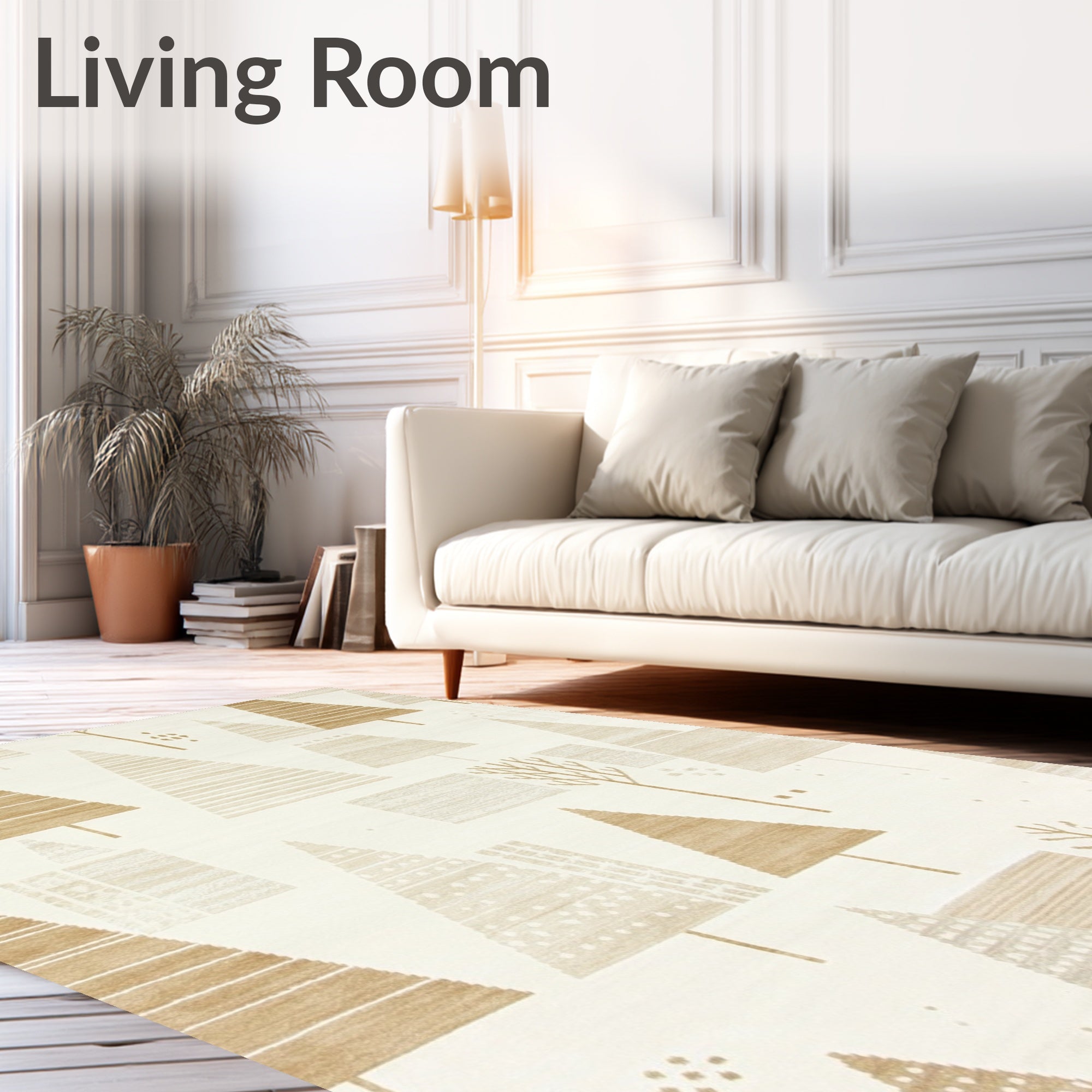 Ultra Soft Area Rug, Non Slip, Stain Resistant, Washable Area Rugs for Living Room, Bedroom, Festive Forest Beige Christmas Tree of Holiday(Beige) Overview: