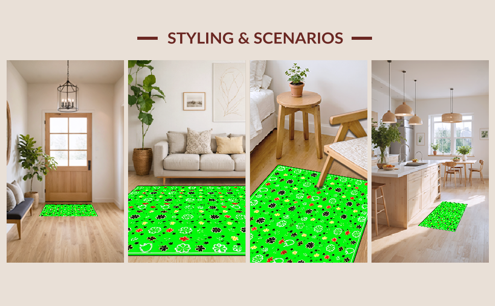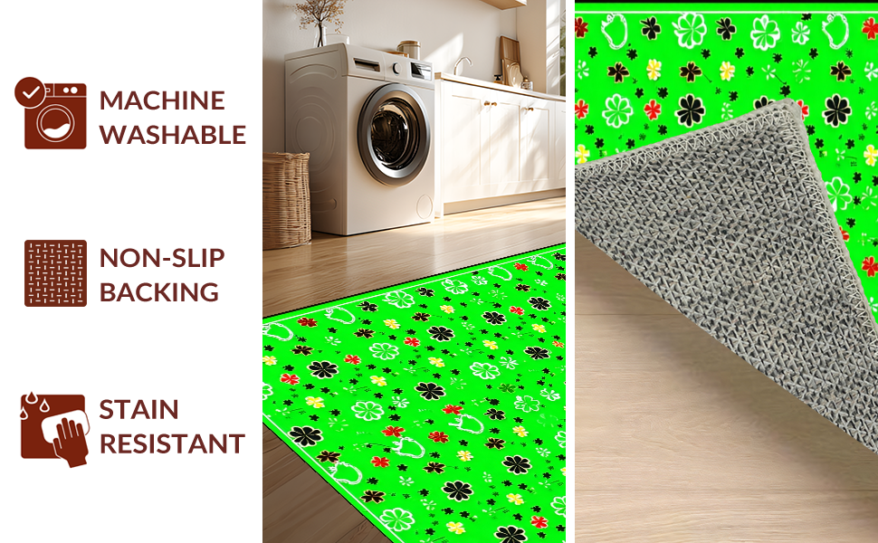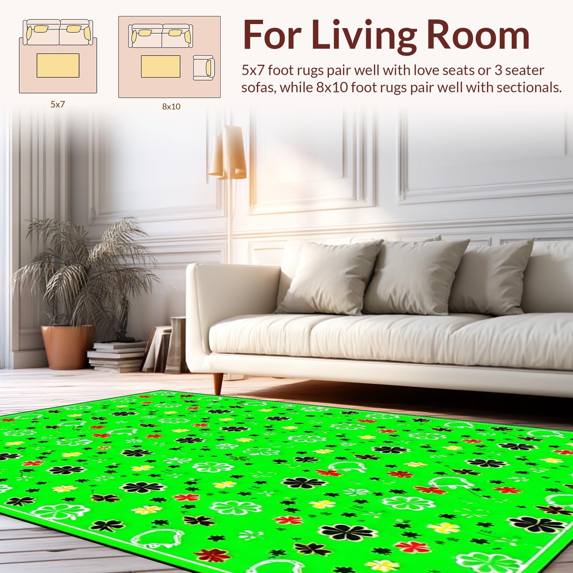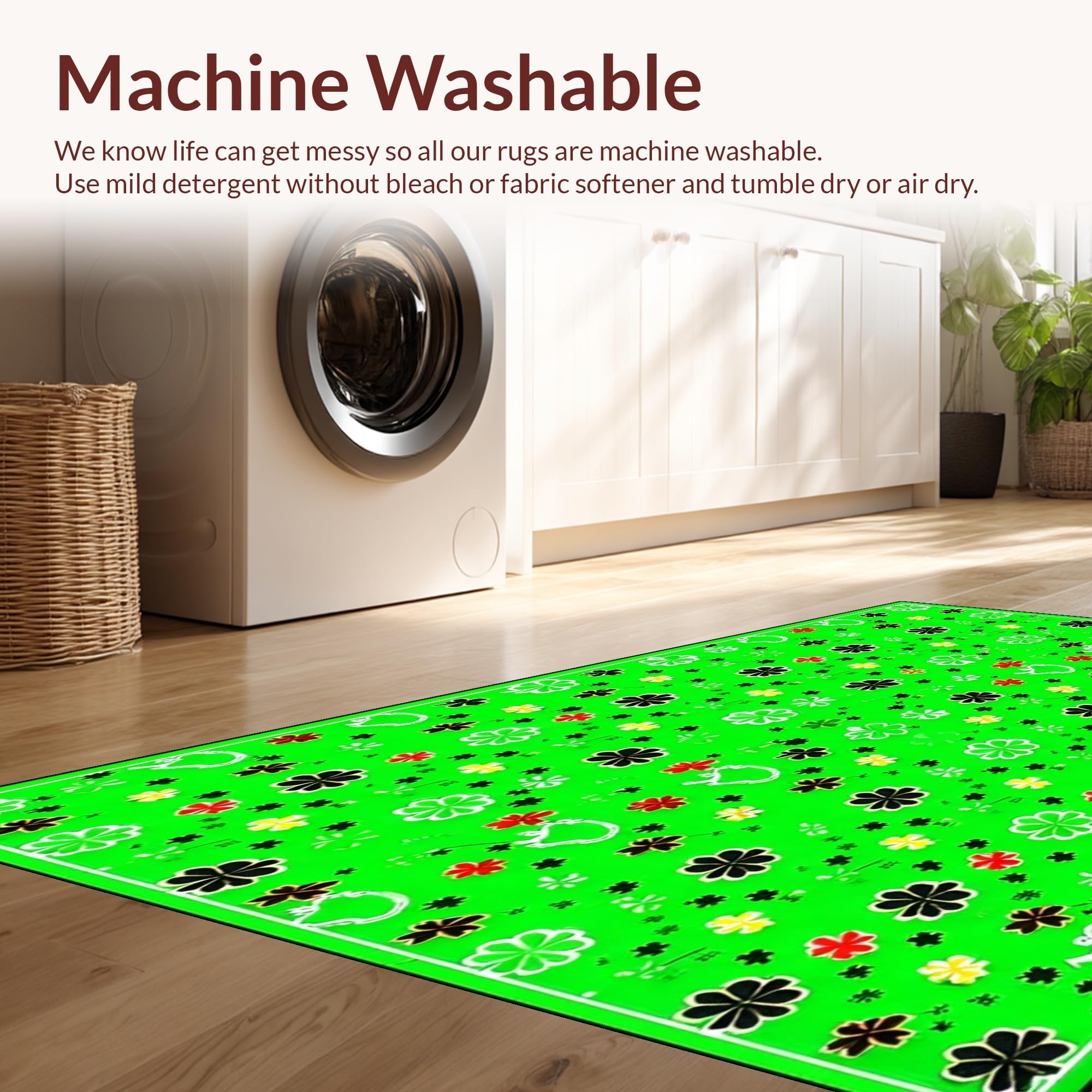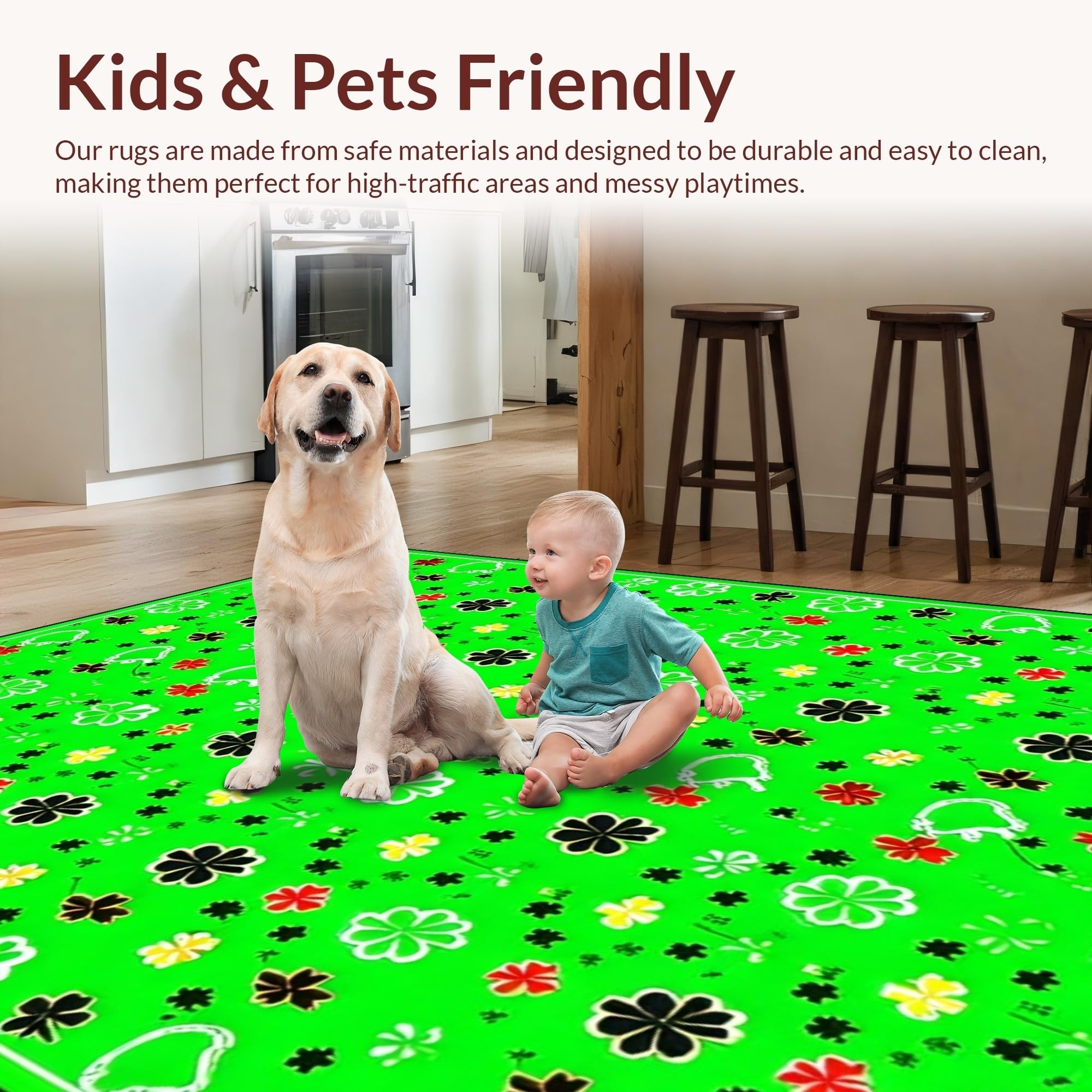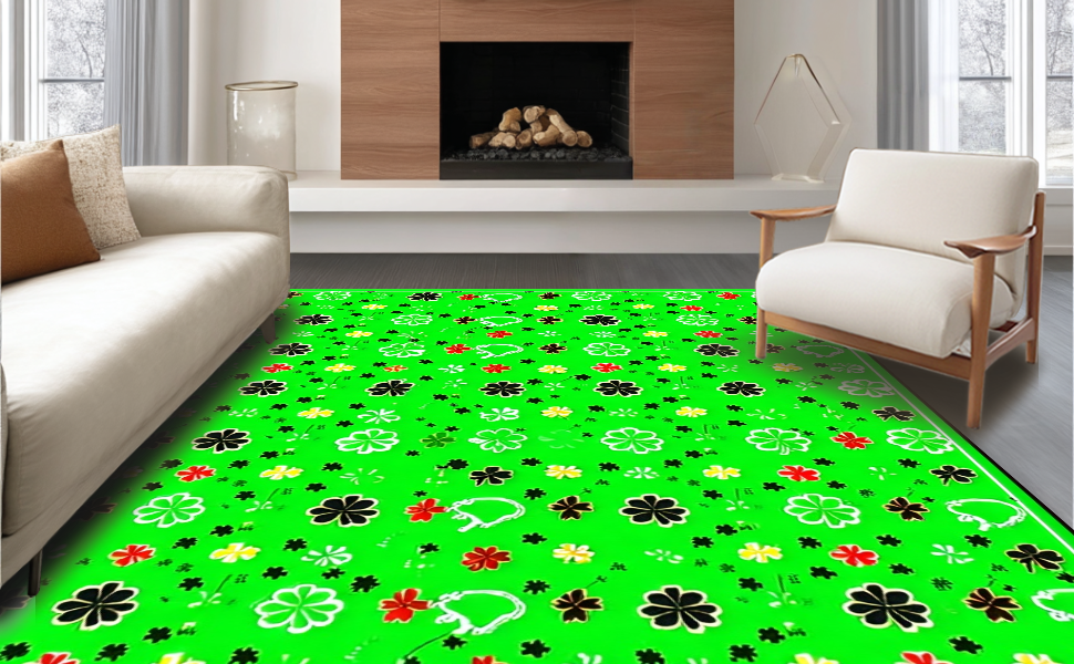 Ultra Soft Area Rug, Non Slip, Stain Resistant, Washable Area Rugs for Living Room, Bedroom, Festive Four Leaf Clover Aesthetic(Green) Overview: