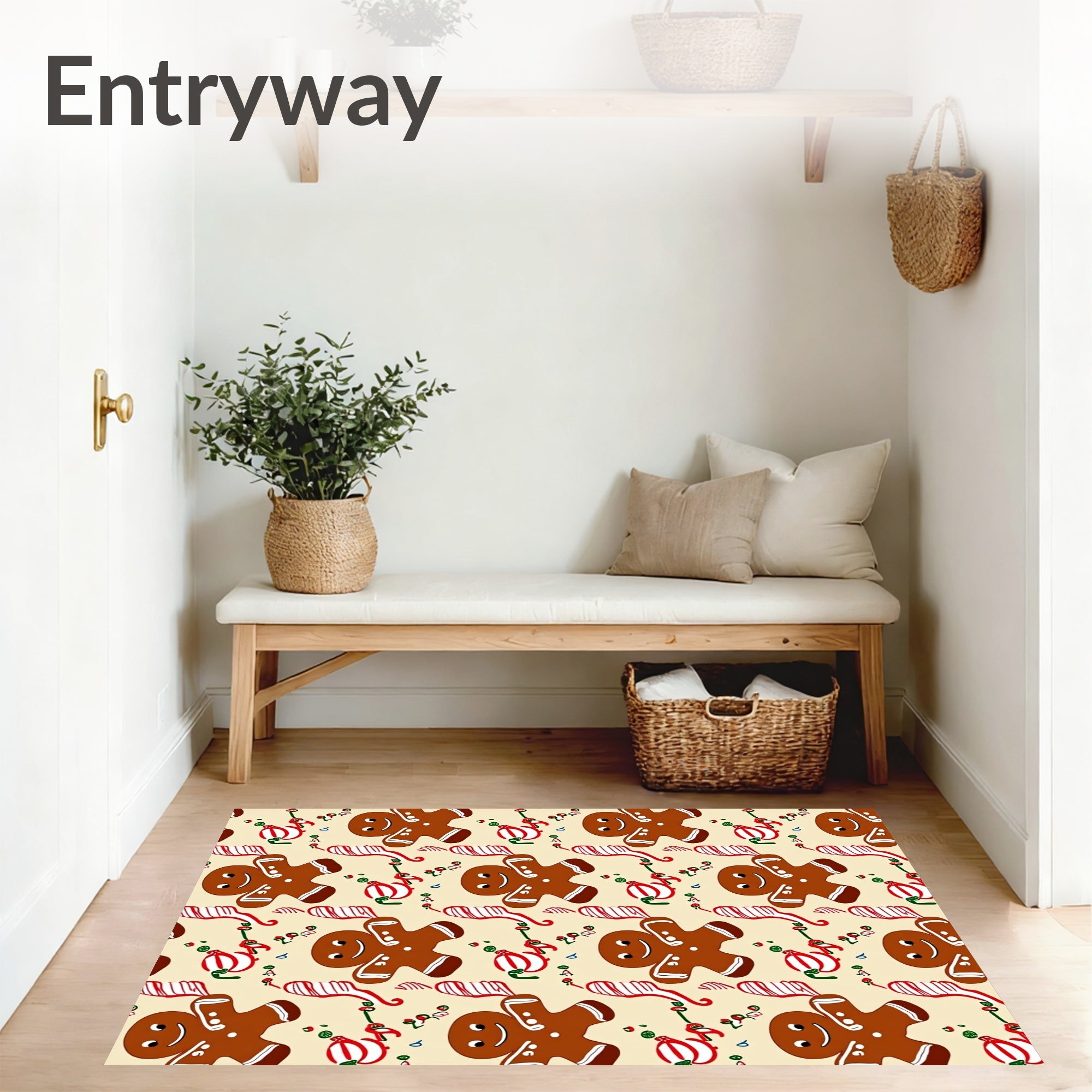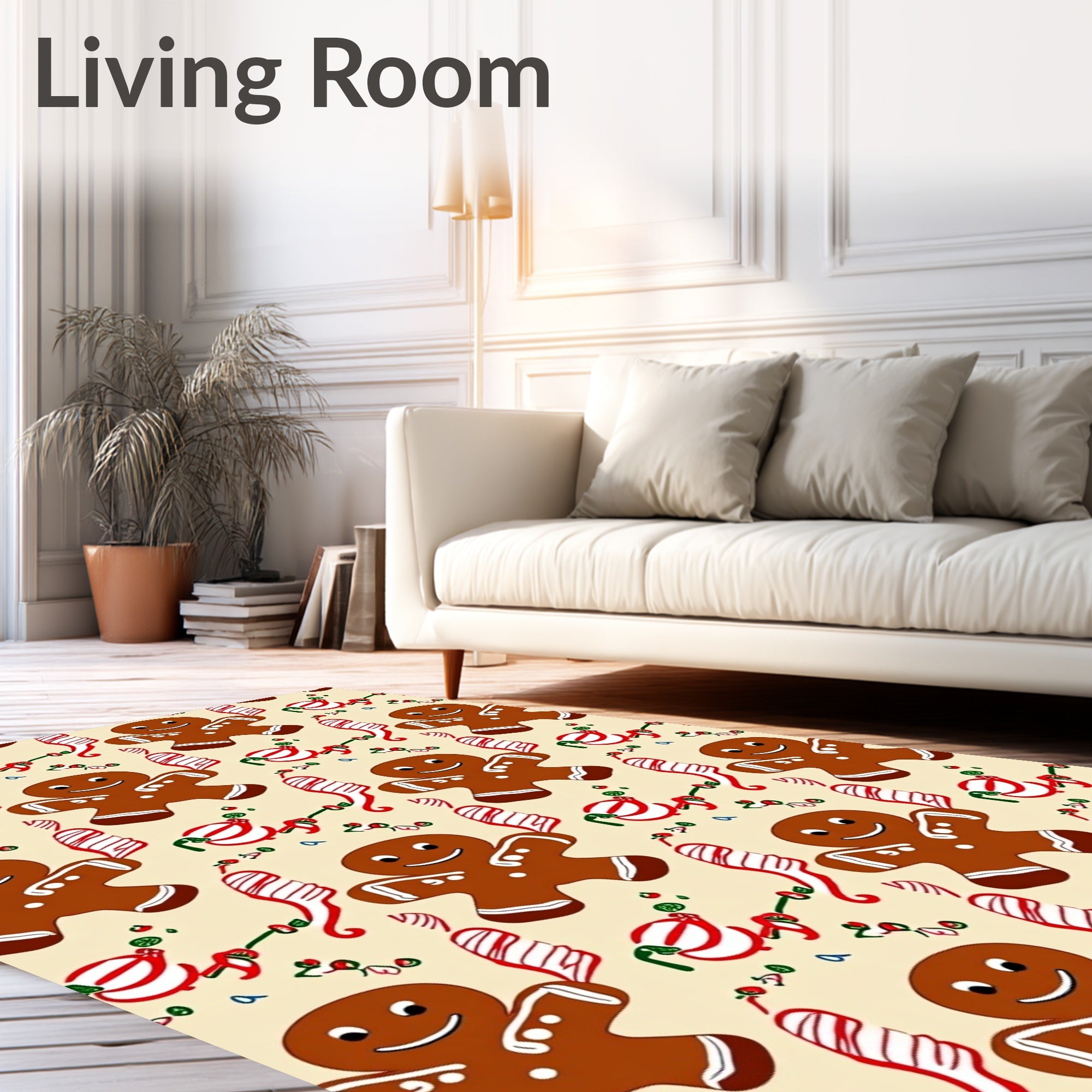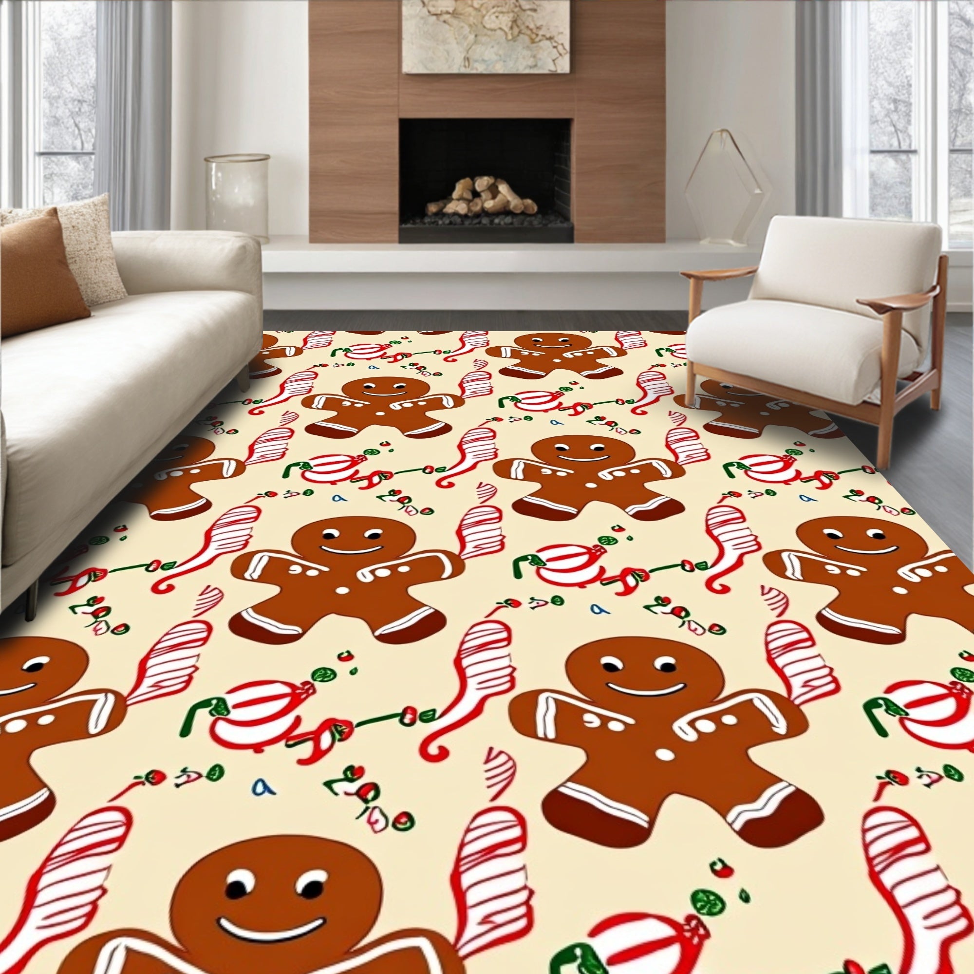 Flatwoven High Traffic Area Rug, Festive Gingerbread Cookie Motif Holiday Baking Theme, Non Slip, Stain Resistant, Washable Area Rugs for Living Room, Bedroom (Ivory) Overview: