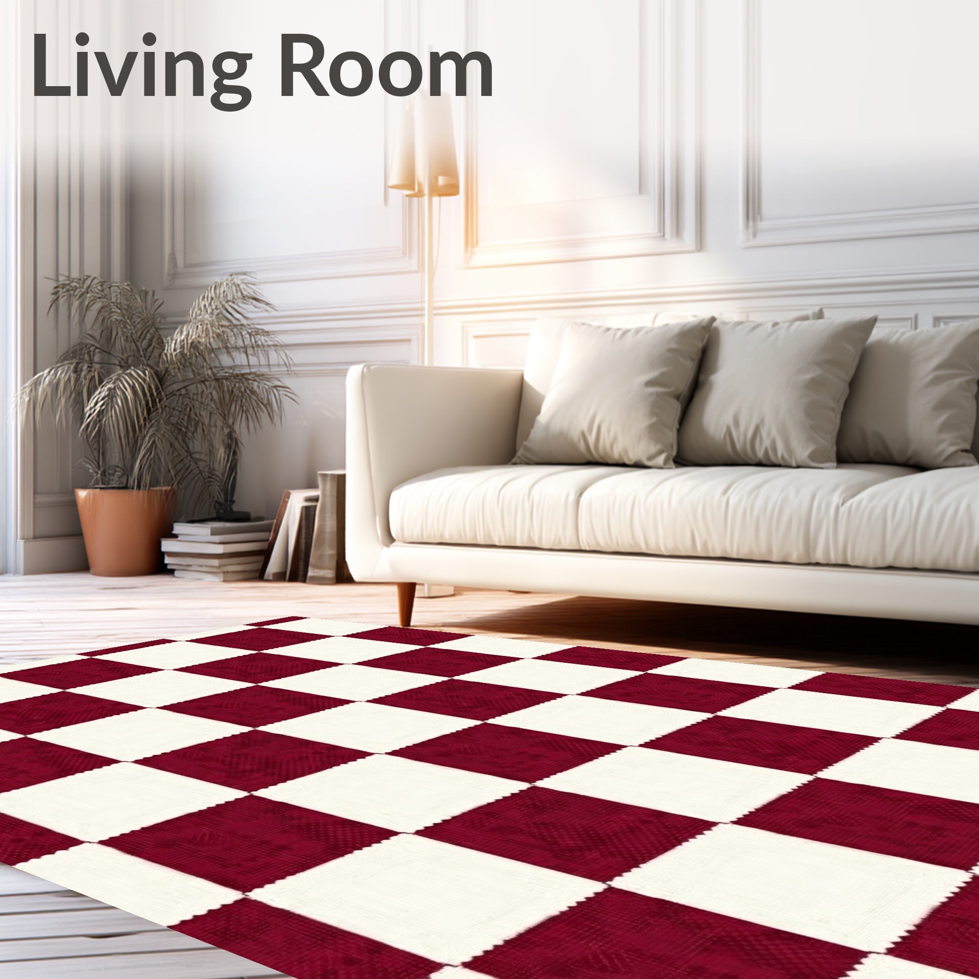 Ultra Soft Area Rug, Non Slip, Stain Resistant, Washable Area Rugs for Living Room, Bedroom, Festive Gingham featuring Traditional Crosshatch Motifs(Red) Overview: