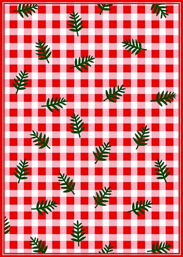 Festive Gingham Patchwork with Evergreen Sprig Accents(Red)