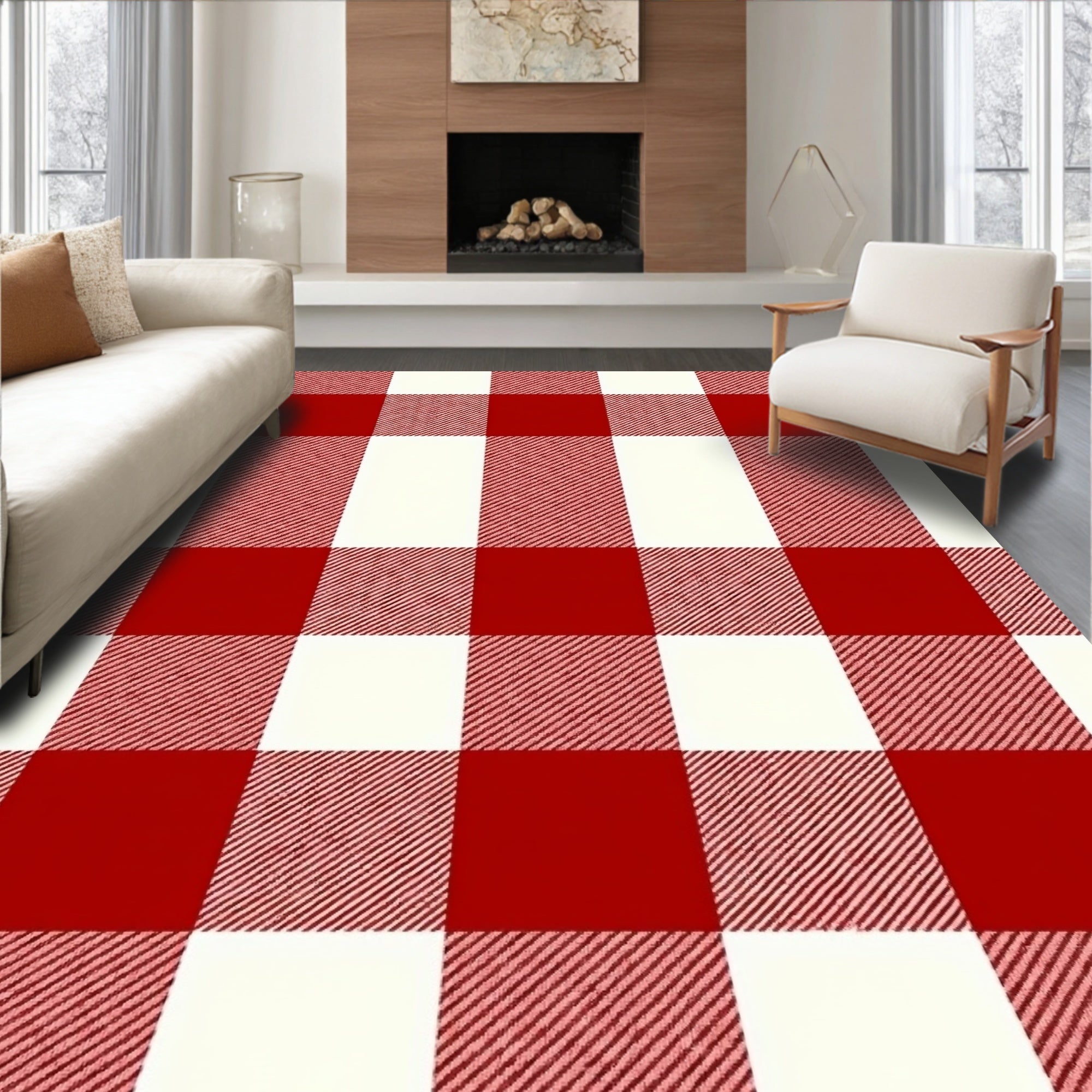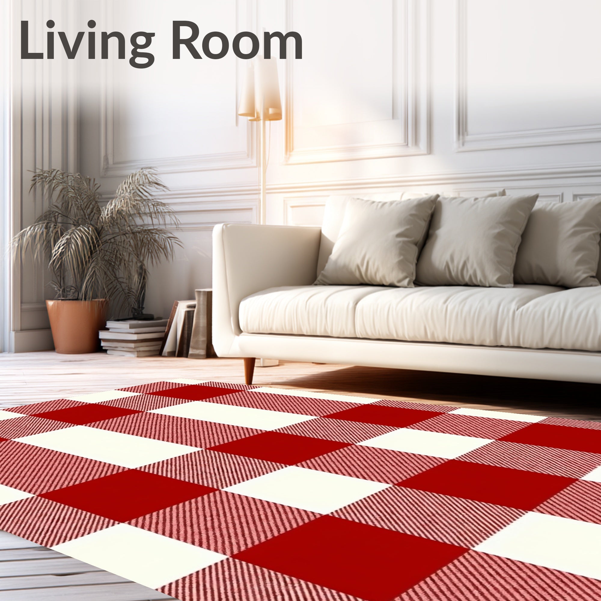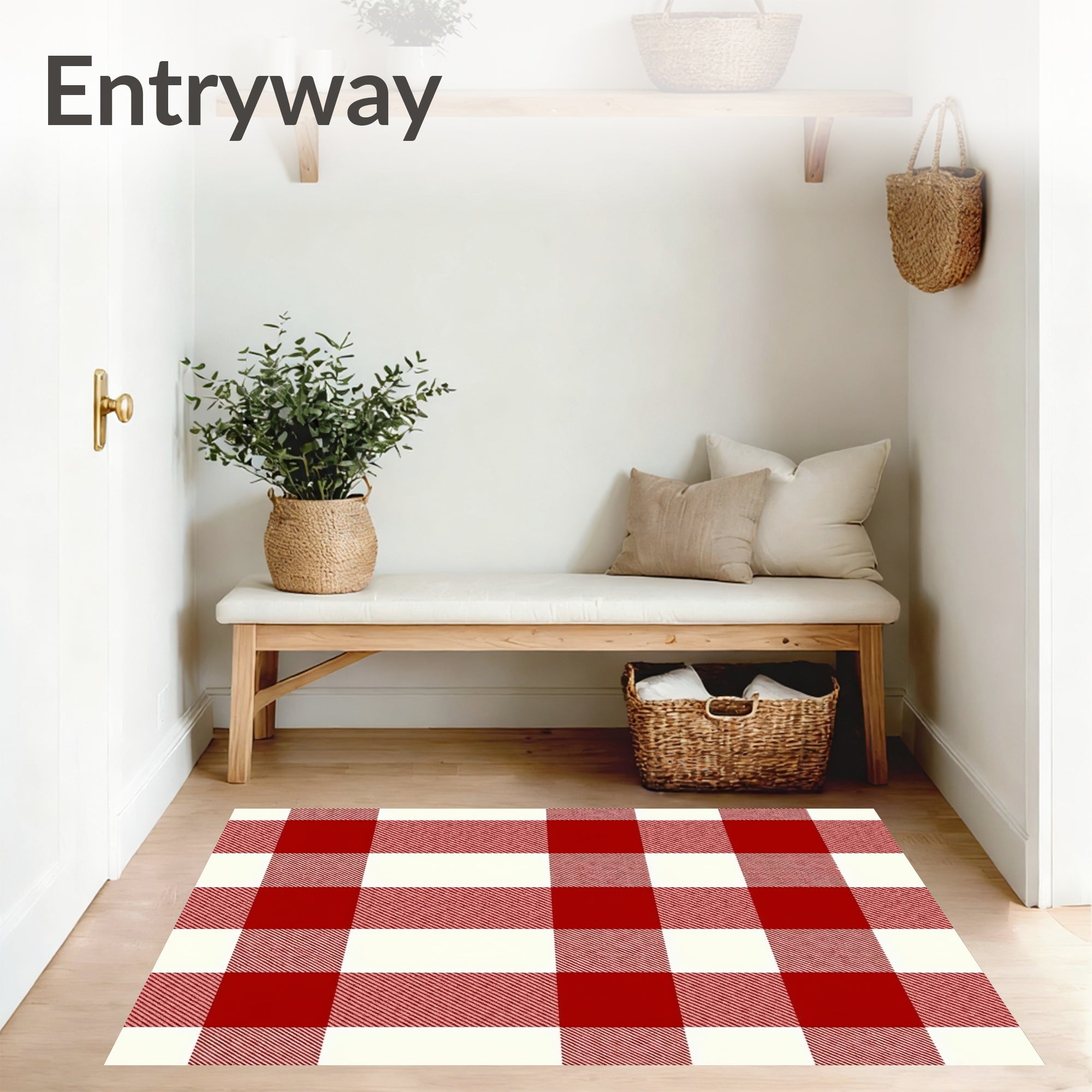 Ultra Soft Area Rug, Non Slip, Stain Resistant, Washable Area Rugs for Living Room, Bedroom, Festive Gingham Welcoming Entrance(Red) Overview: