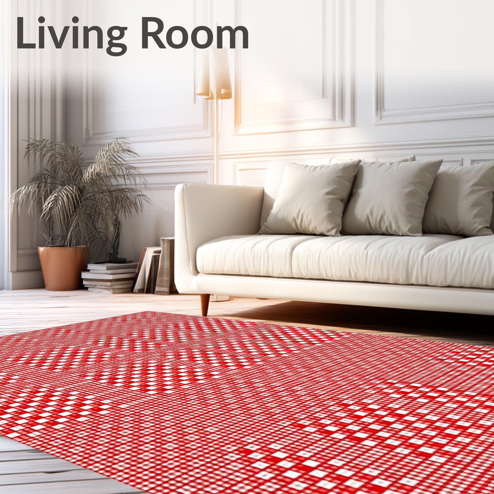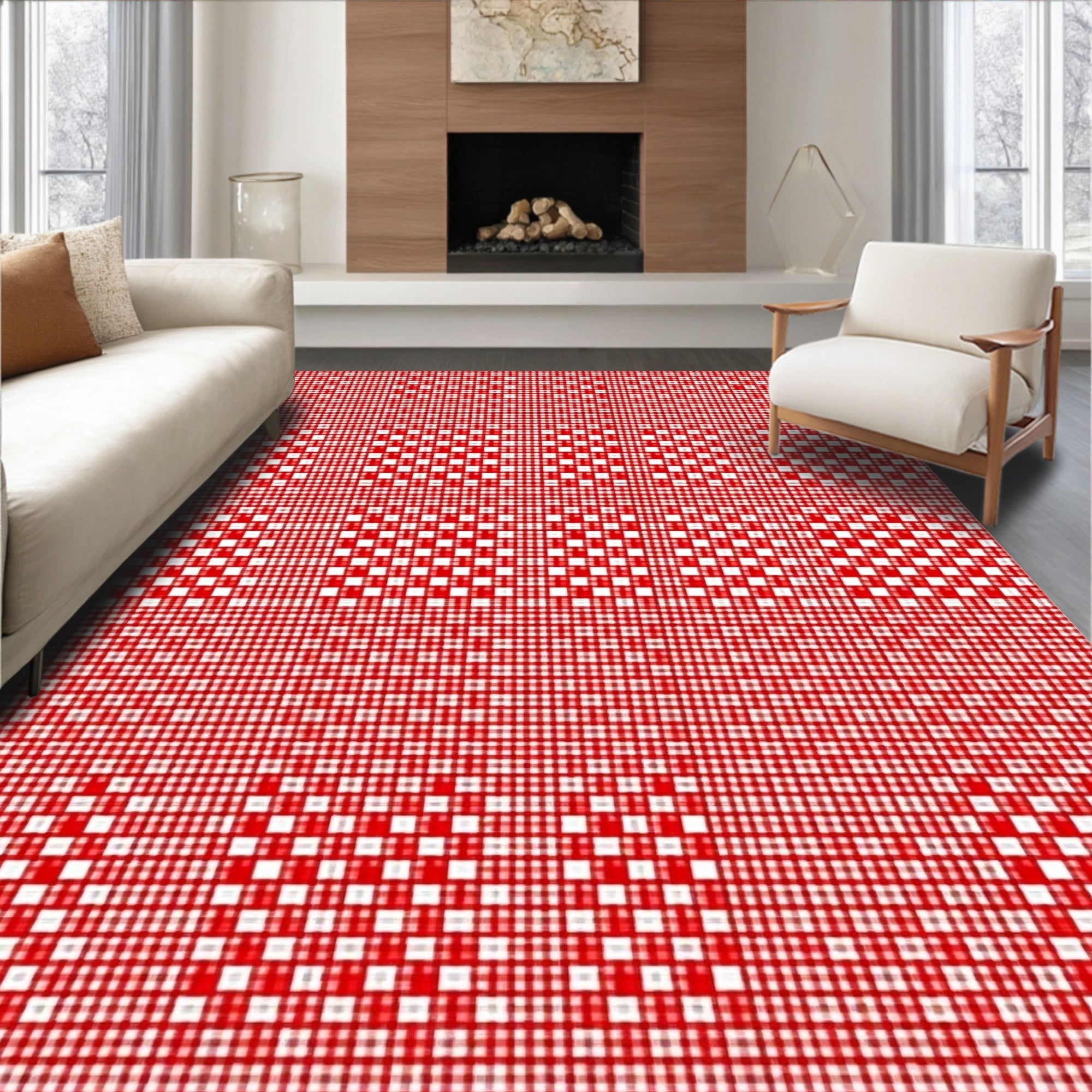 Ultra Soft Area Rug, Non Slip, Stain Resistant, Washable Area Rugs for Living Room, Bedroom, Festive Gingham Yuletide(Red) Overview: