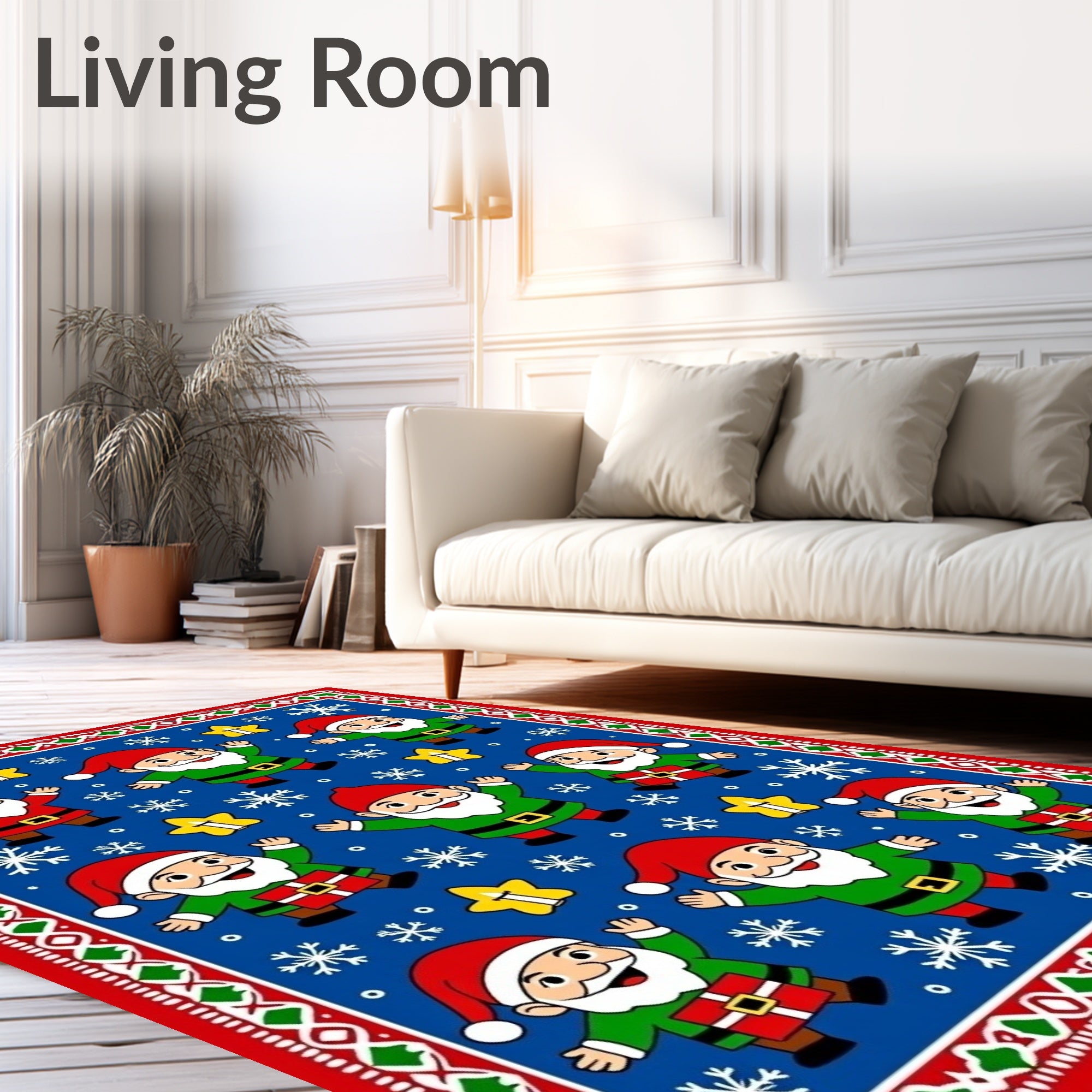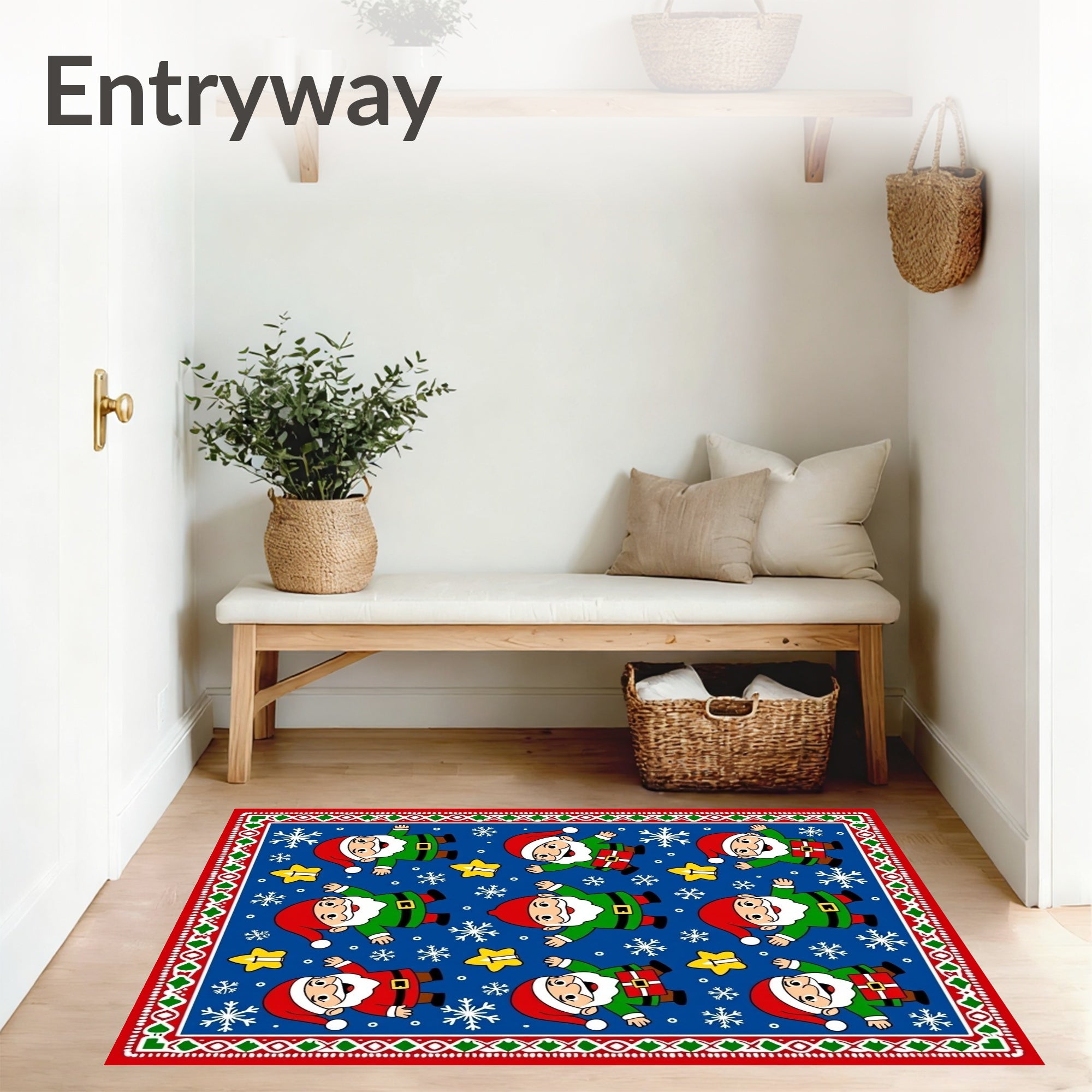 Ultra Soft Area Rug, Non Slip, Stain Resistant, Washable Area Rugs for Living Room, Bedroom, Festive Gnome Holiday Celebration Doormat(Blue) Overview: