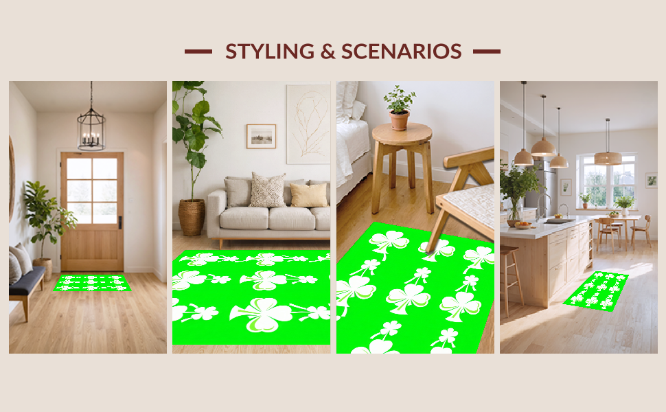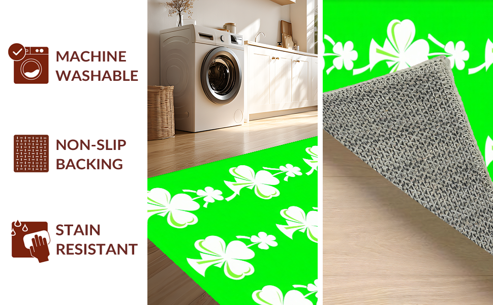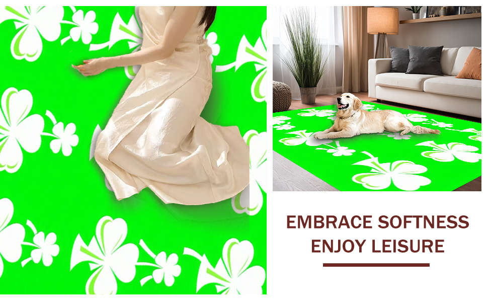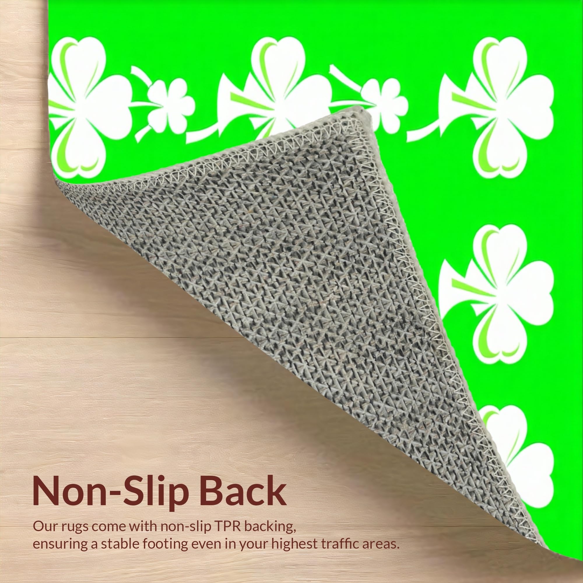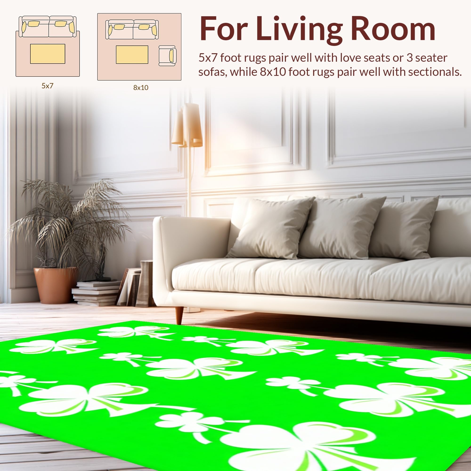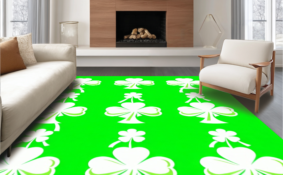 Ultra Soft Area Rug, Non Slip, Stain Resistant, Washable Area Rugs for Living Room, Bedroom, Festive Gnome Shamrock Motif(White) Overview:
