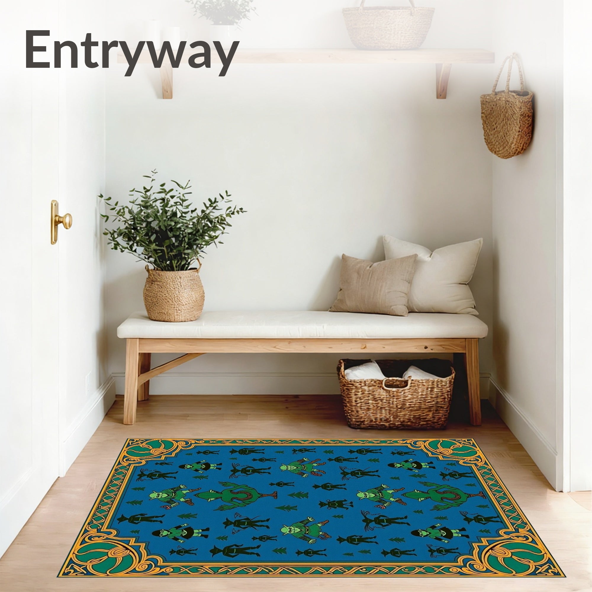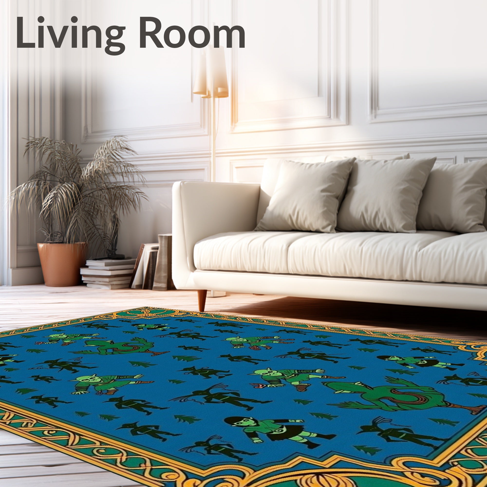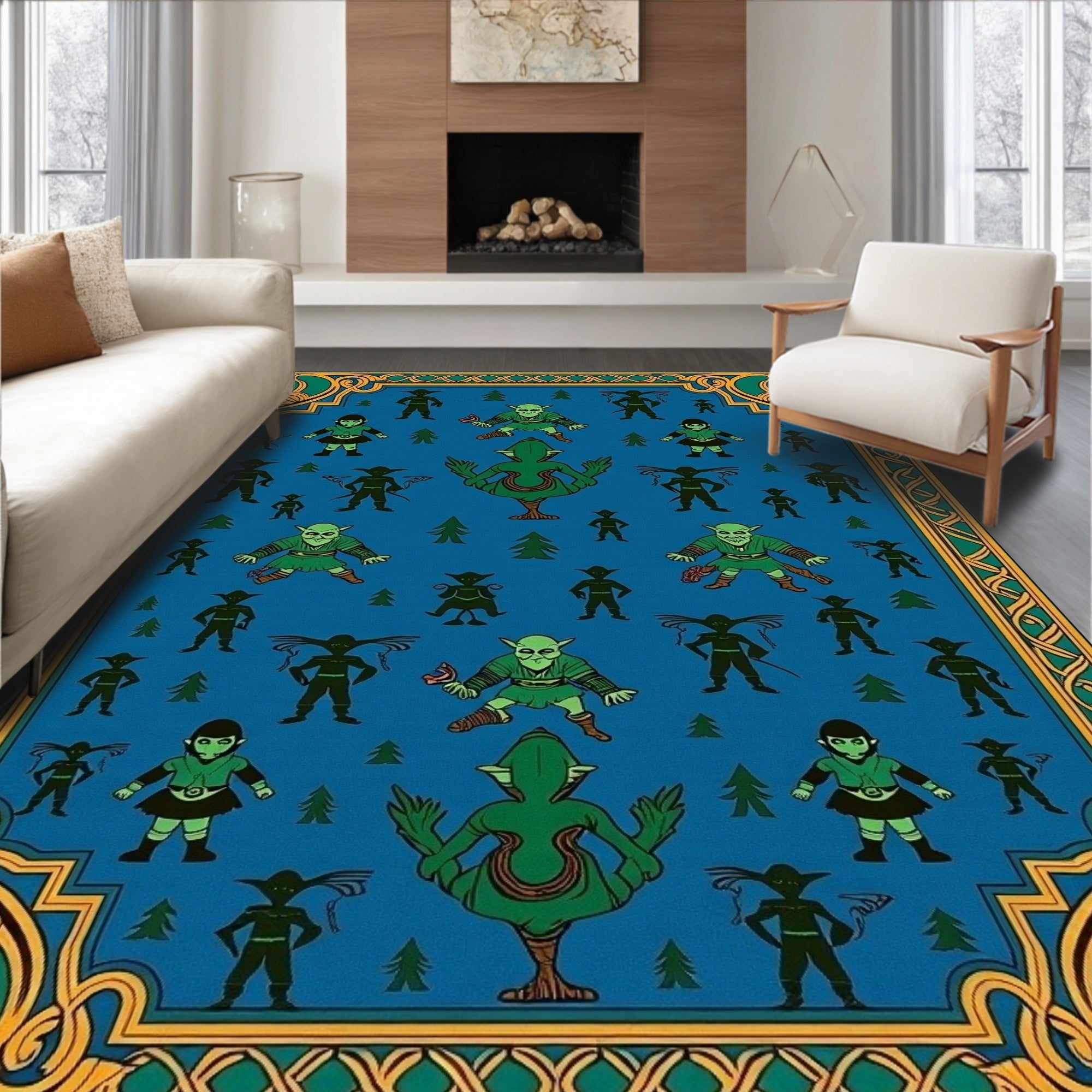 Ultra Soft Area Rug, Non Slip, Stain Resistant, Washable Area Rugs for Living Room, Bedroom, Festive Goblin Folklore Design Anti Slip Holiday Accent Throw(Blue) Overview: