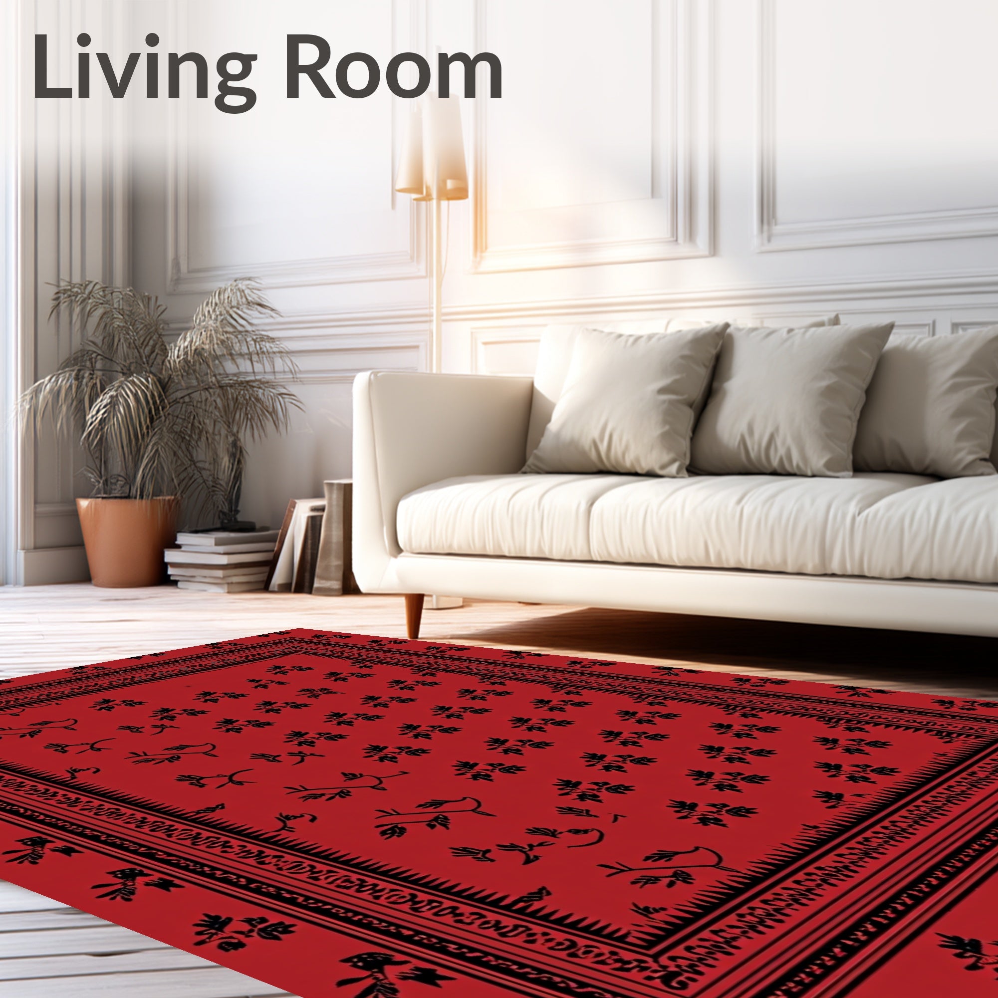 Ultra Soft Area Rug, Non Slip, Stain Resistant, Washable Area Rugs for Living Room, Bedroom, Festive Holiday Berries Trellis Traditional Vintage Tapestry(Red) Overview:
