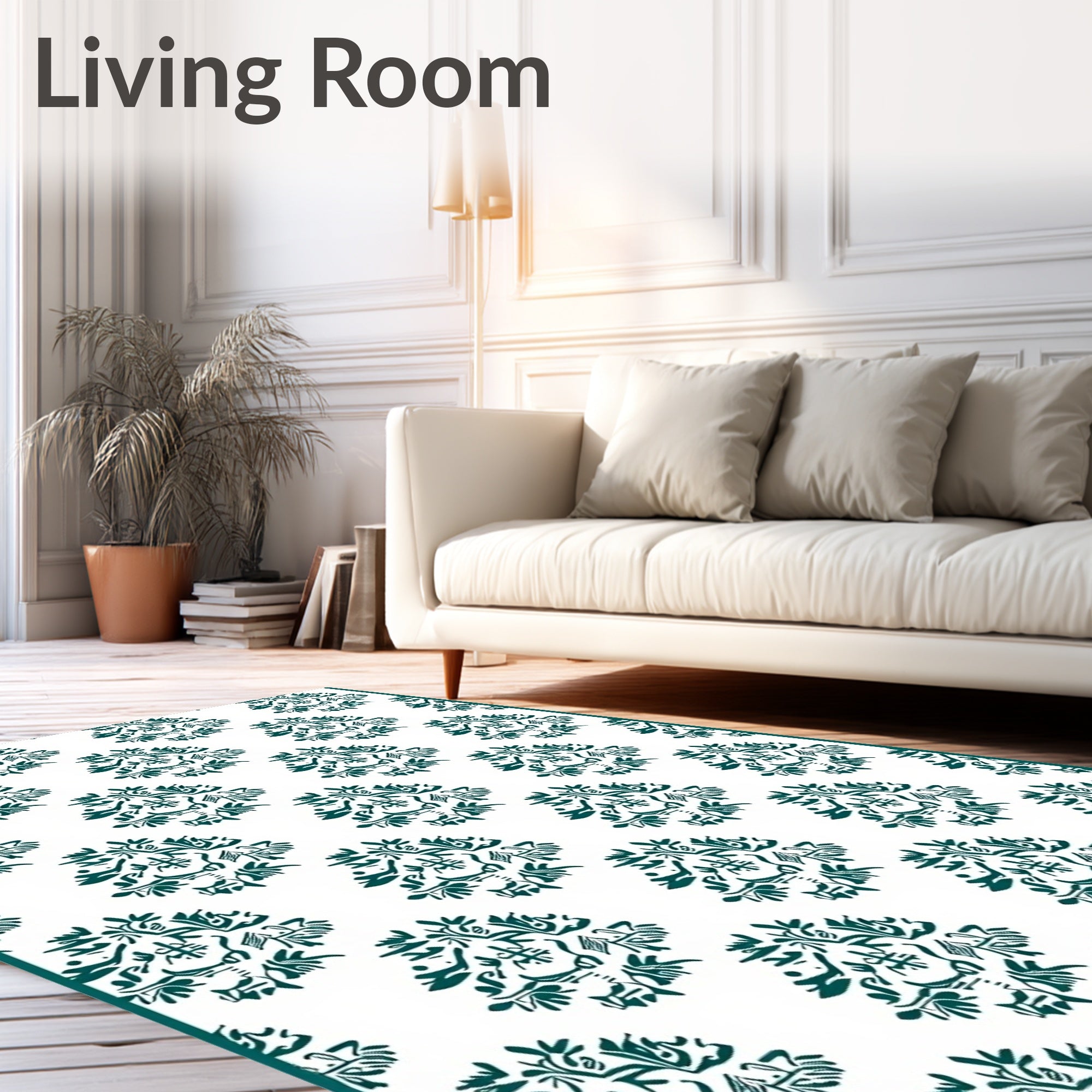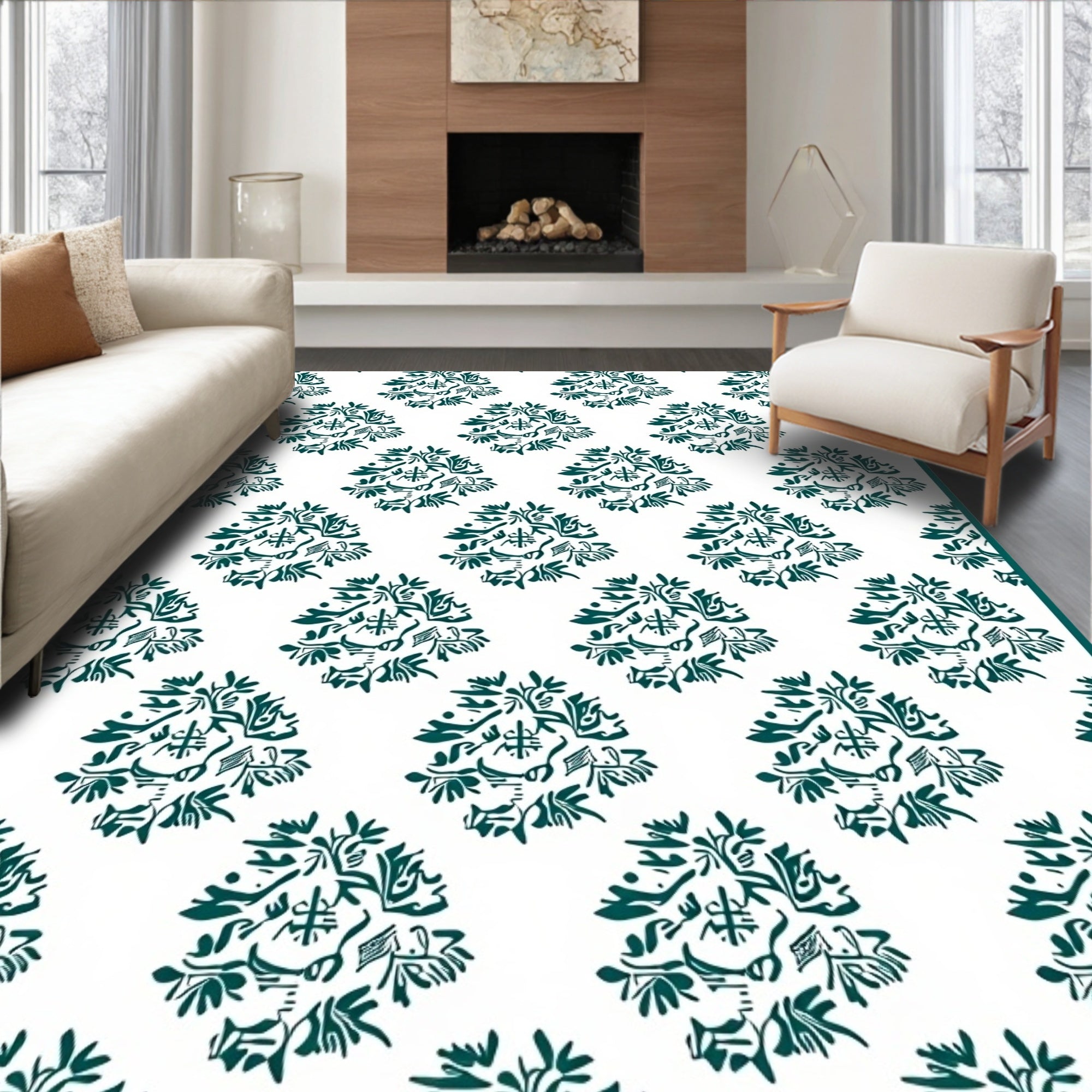 Ultra Soft Area Rug, Non Slip, Stain Resistant, Washable Area Rugs for Living Room, Bedroom, Festive Holiday Medallion Botanical Foliage Decoration(Green) Overview: