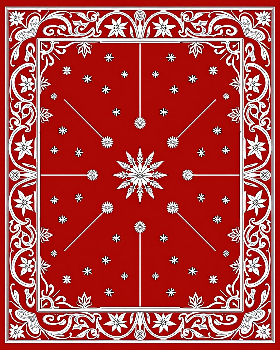 Festive Holiday Medallion Tapestry With Elegant Botanical Motifs(Red)