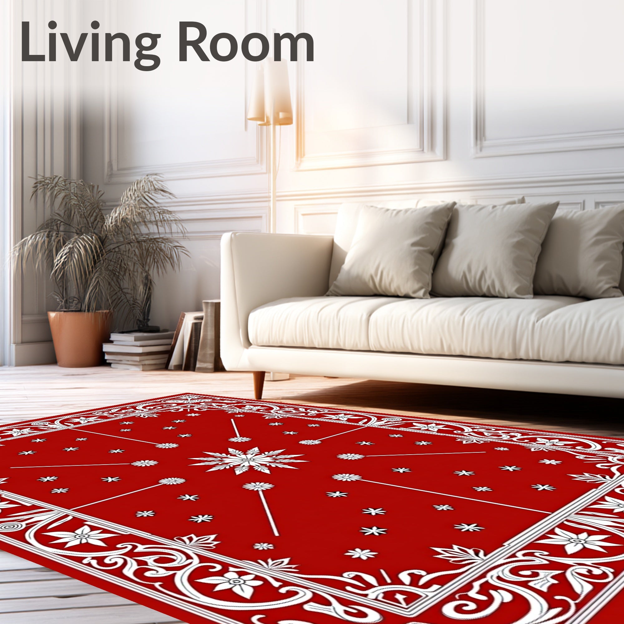 Ultra Soft Area Rug, Non Slip, Stain Resistant, Washable Area Rugs for Living Room, Bedroom, Festive Holiday Medallion Tapestry With Elegant Botanical Motifs(Red) Overview: