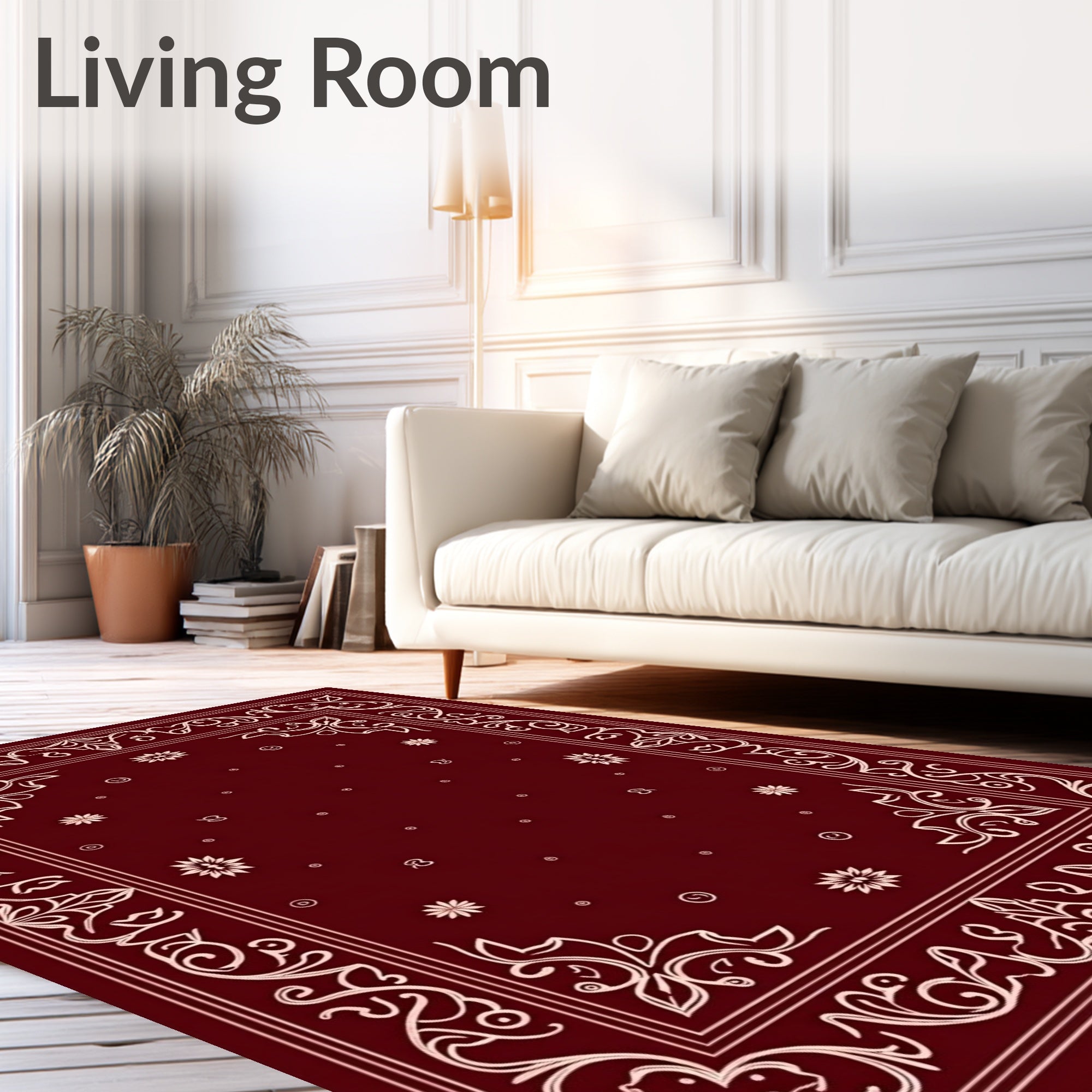 Ultra Soft Area Rug, Non Slip, Stain Resistant, Washable Area Rugs for Living Room, Bedroom, Festive Holiday Paisley Enchanted Winter Wonderland(Red) Overview: