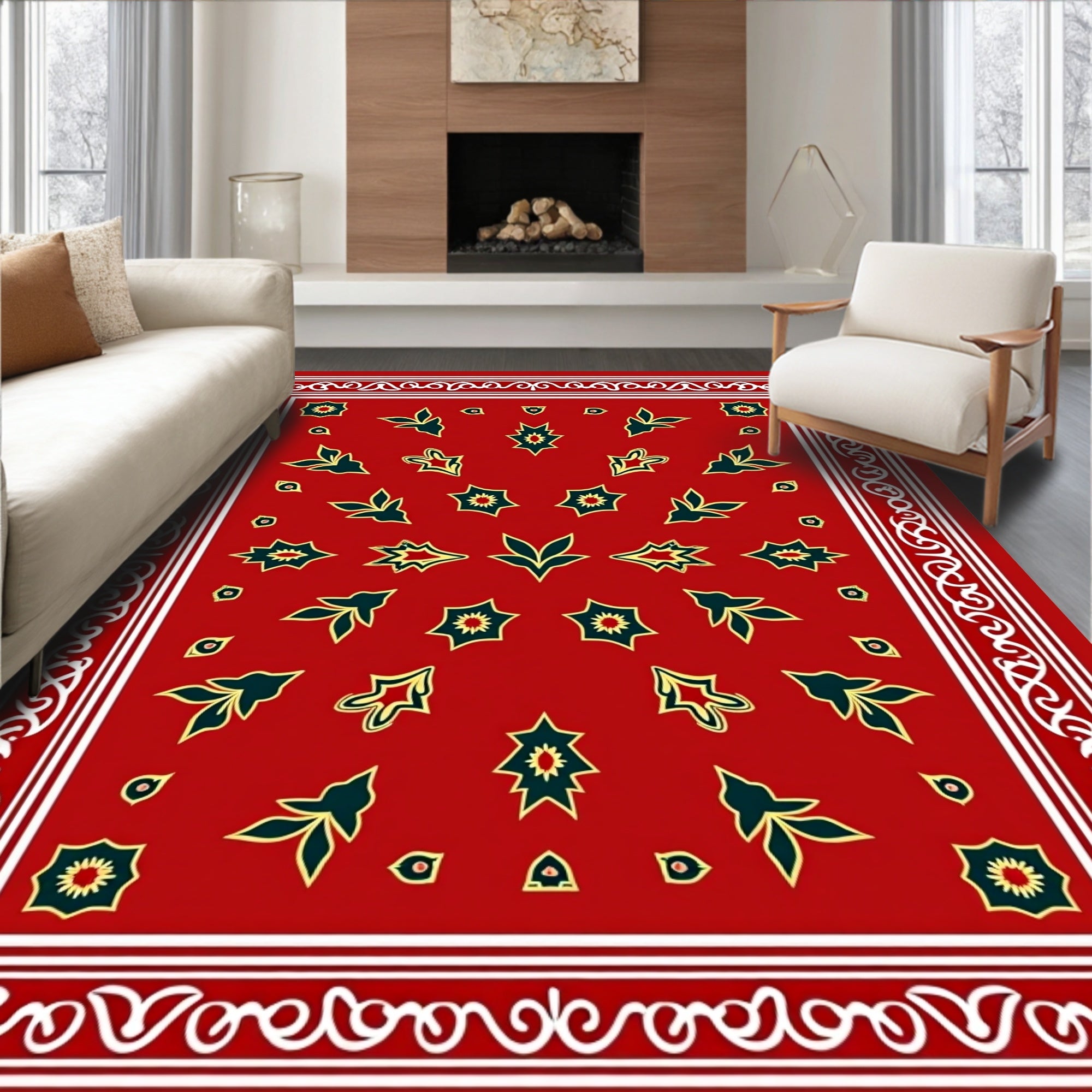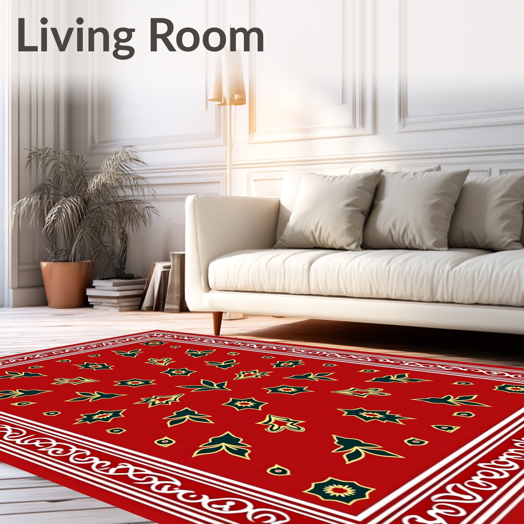 Ultra Soft Area Rug, Non Slip, Stain Resistant, Washable Area Rugs for Living Room, Bedroom, Festive Holly Arabesque Heritage(Red) Overview: