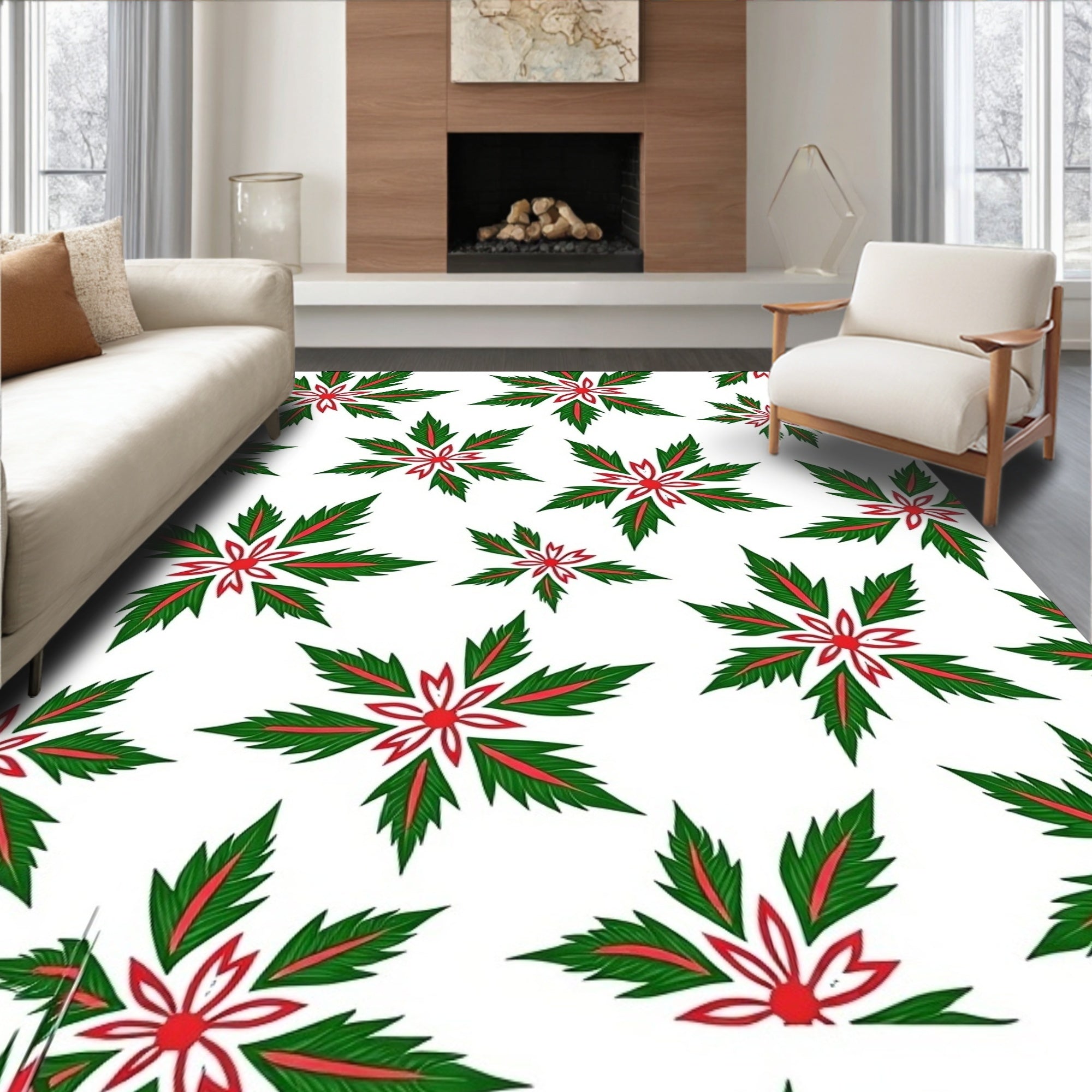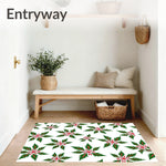 Flatwoven High Traffic Area Rug, Festive Holly Berry Vine Holiday with Snowflake Accents, Non Slip, Stain Resistant, Washable Area Rugs for Living Room, Bedroom (White) Overview: