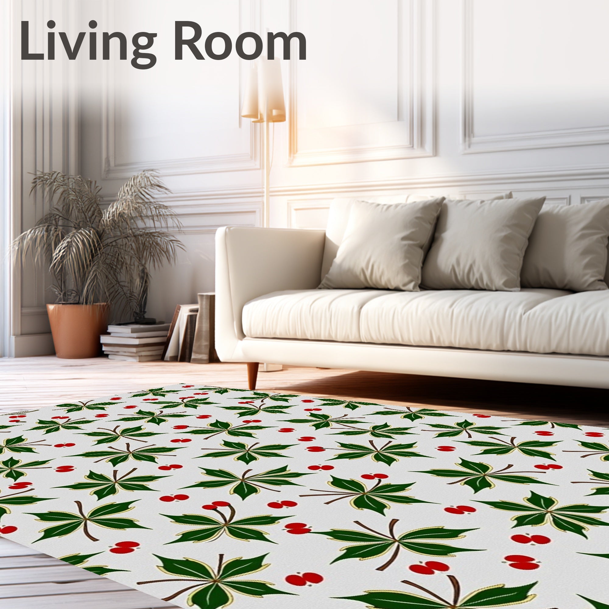 Ultra Soft Area Rug, Non Slip, Stain Resistant, Washable Area Rugs for Living Room, Bedroom, Festive Holly Berry Vine with Traditional Yuletide Botanical Design(Green) Overview: