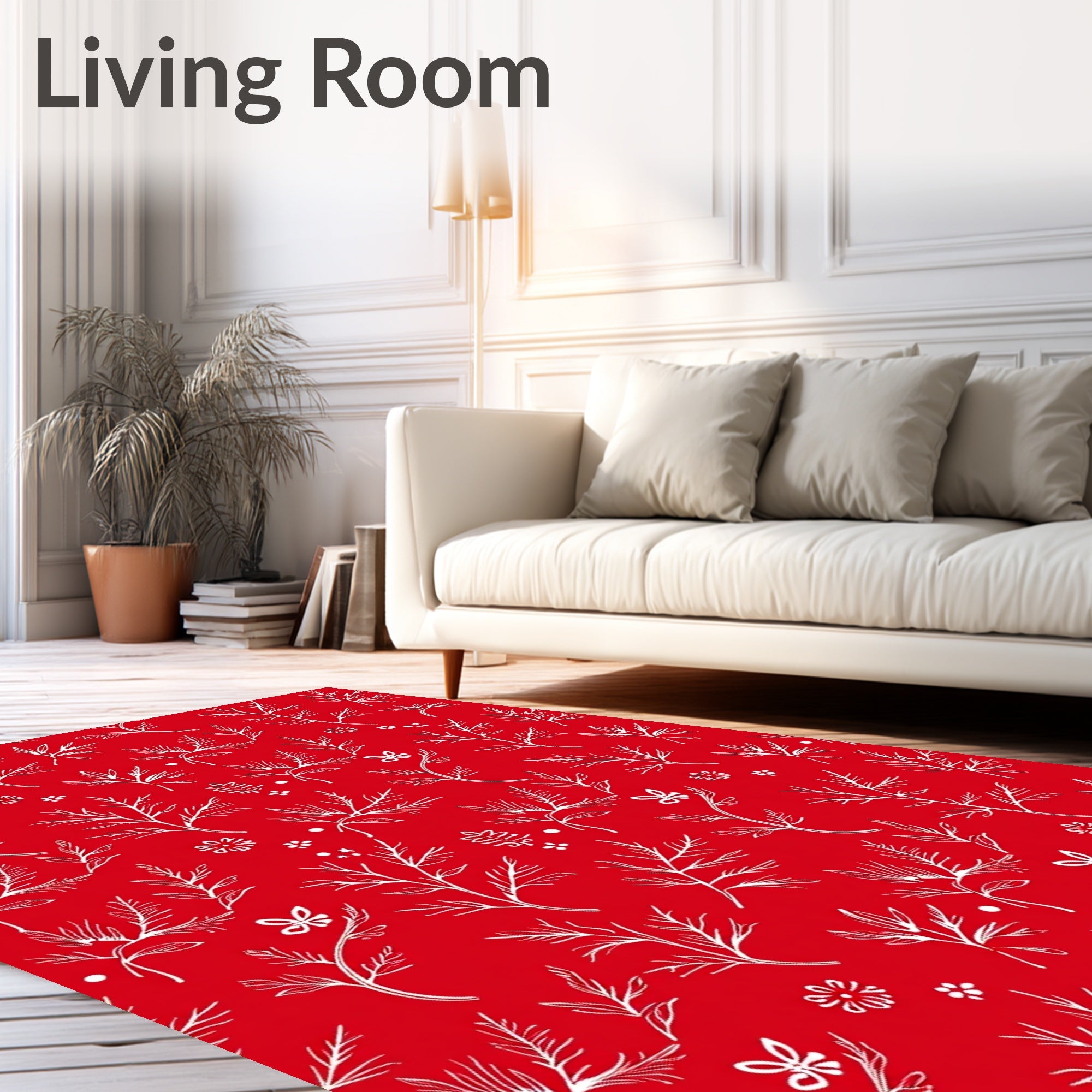 Ultra Soft Area Rug, Non Slip, Stain Resistant, Washable Area Rugs for Living Room, Bedroom, Festive Holly Leaf Interlocking Winter Holiday(Red) Overview: