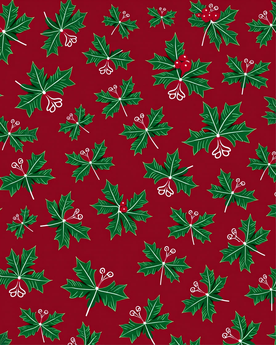 Festive Holly Leaf Motif with Seasonal Berry Accents(Red)