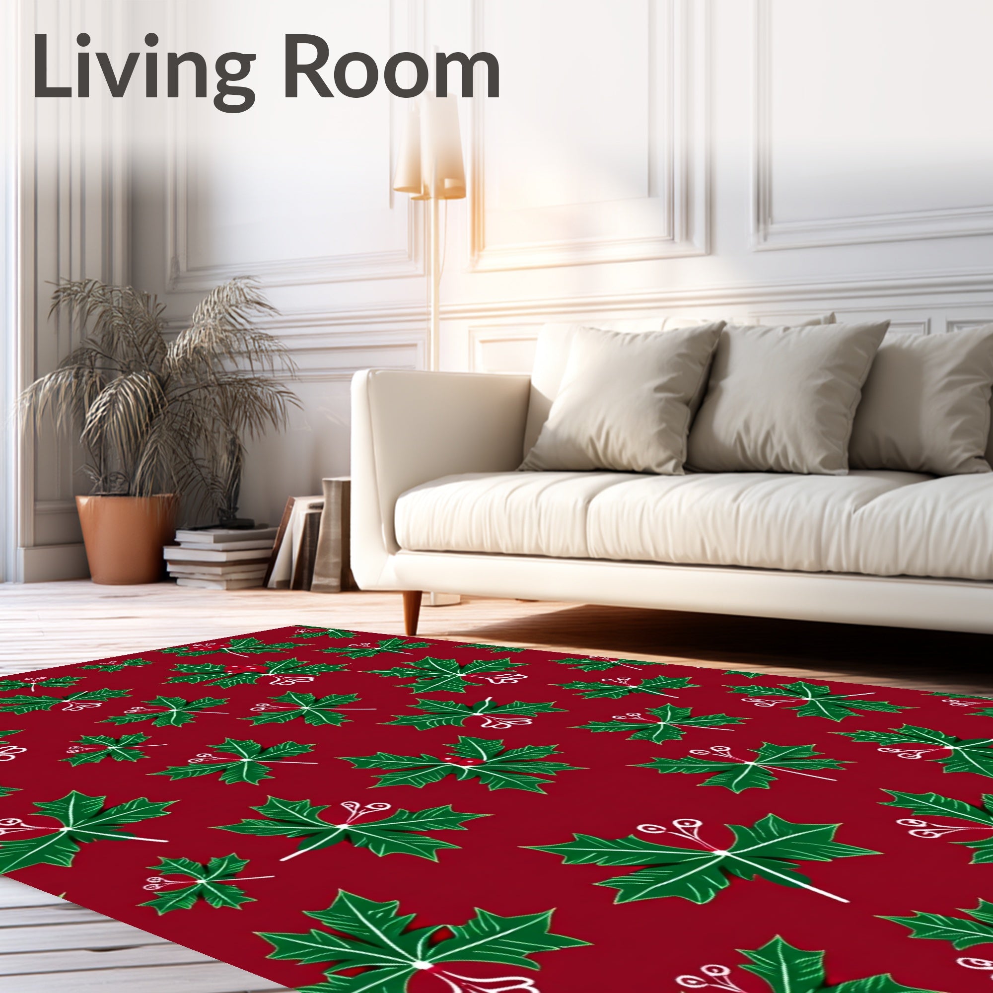 Ultra Soft Area Rug, Non Slip, Stain Resistant, Washable Area Rugs for Living Room, Bedroom, Festive Holly Leaf Motif with Seasonal Berry Accents(Red) Overview: