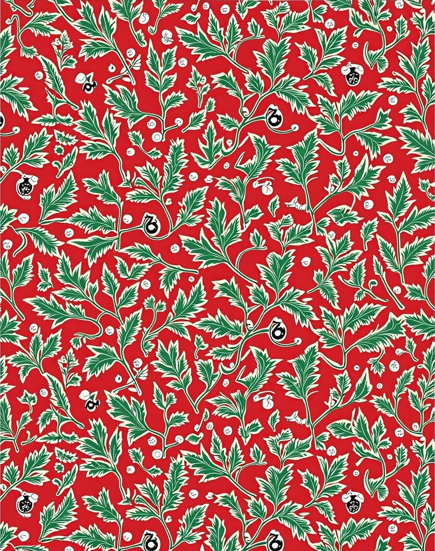 Festive Holly Leaves Botanical Traditional Decorative Accent(Red)
