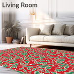 Ultra Soft Area Rug, Non Slip, Stain Resistant, Washable Area Rugs for Living Room, Bedroom, Festive Holly Leaves Botanical Traditional Decorative Accent(Red) Overview: