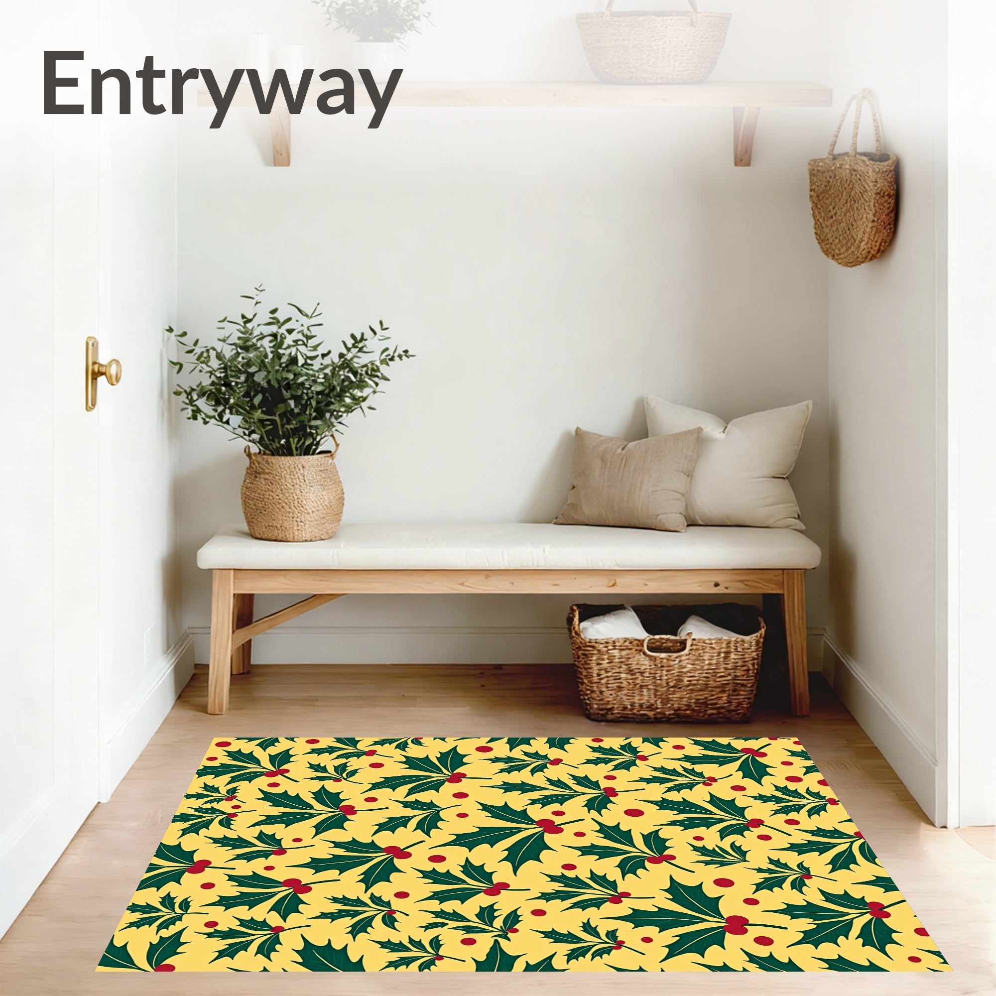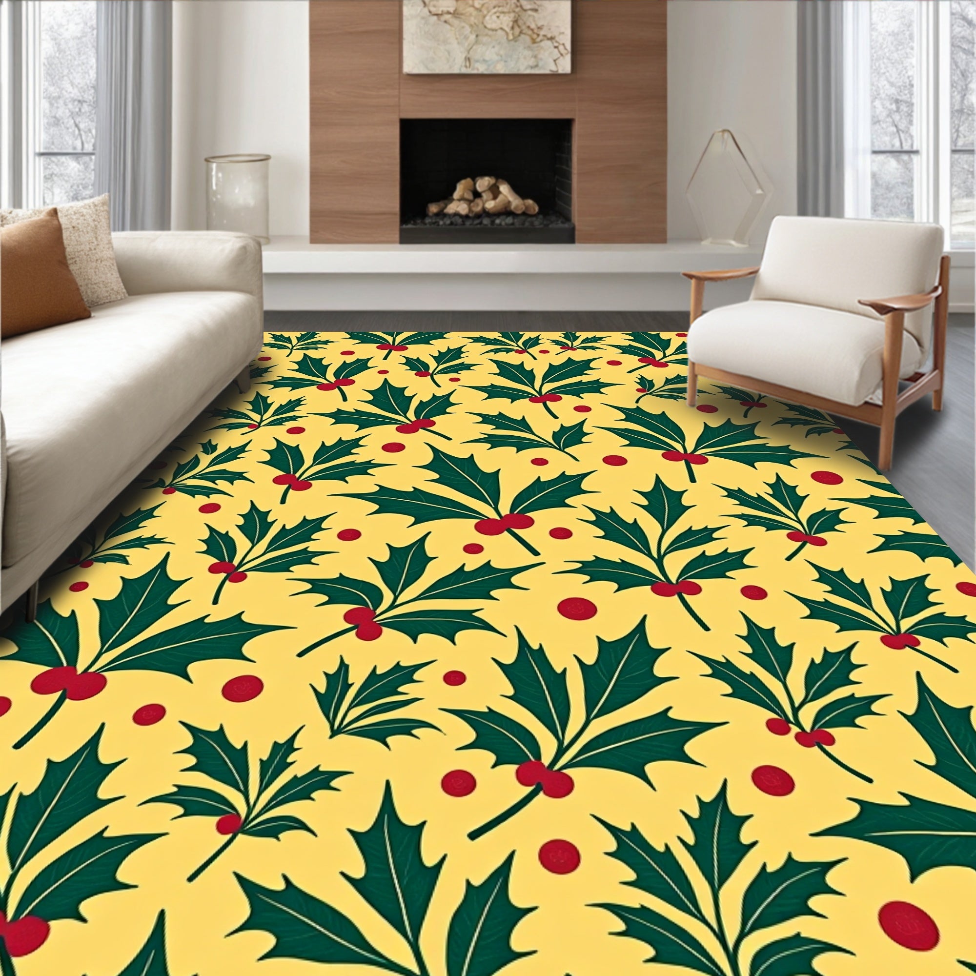 Flatwoven High Traffic Area Rug, Festive Holly Swirl Textured Decorative Holiday Accent, Non Slip, Stain Resistant, Washable Area Rugs for Living Room, Bedroom (Yellow) Overview: