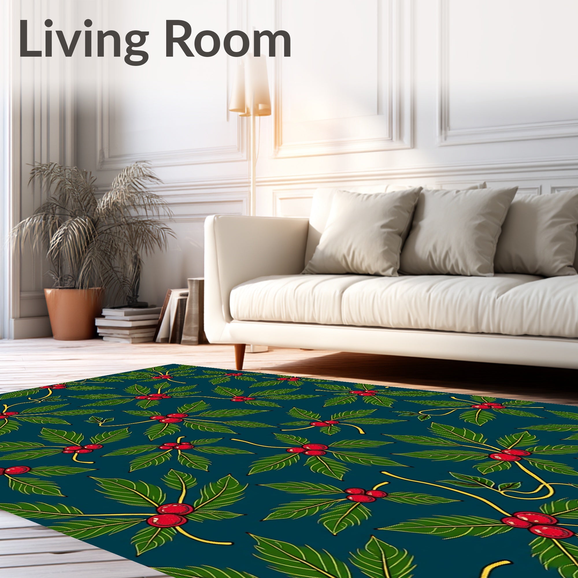 Ultra Soft Area Rug, Non Slip, Stain Resistant, Washable Area Rugs for Living Room, Bedroom, Festive Holly Vine with Rubber Backing(Teal) Overview: