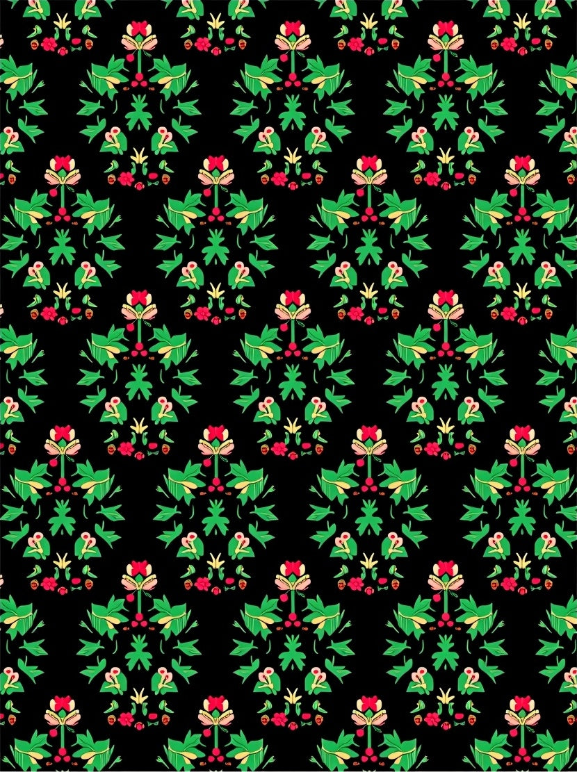 Festive Holly Wreath with Traditional Motifs(Black)