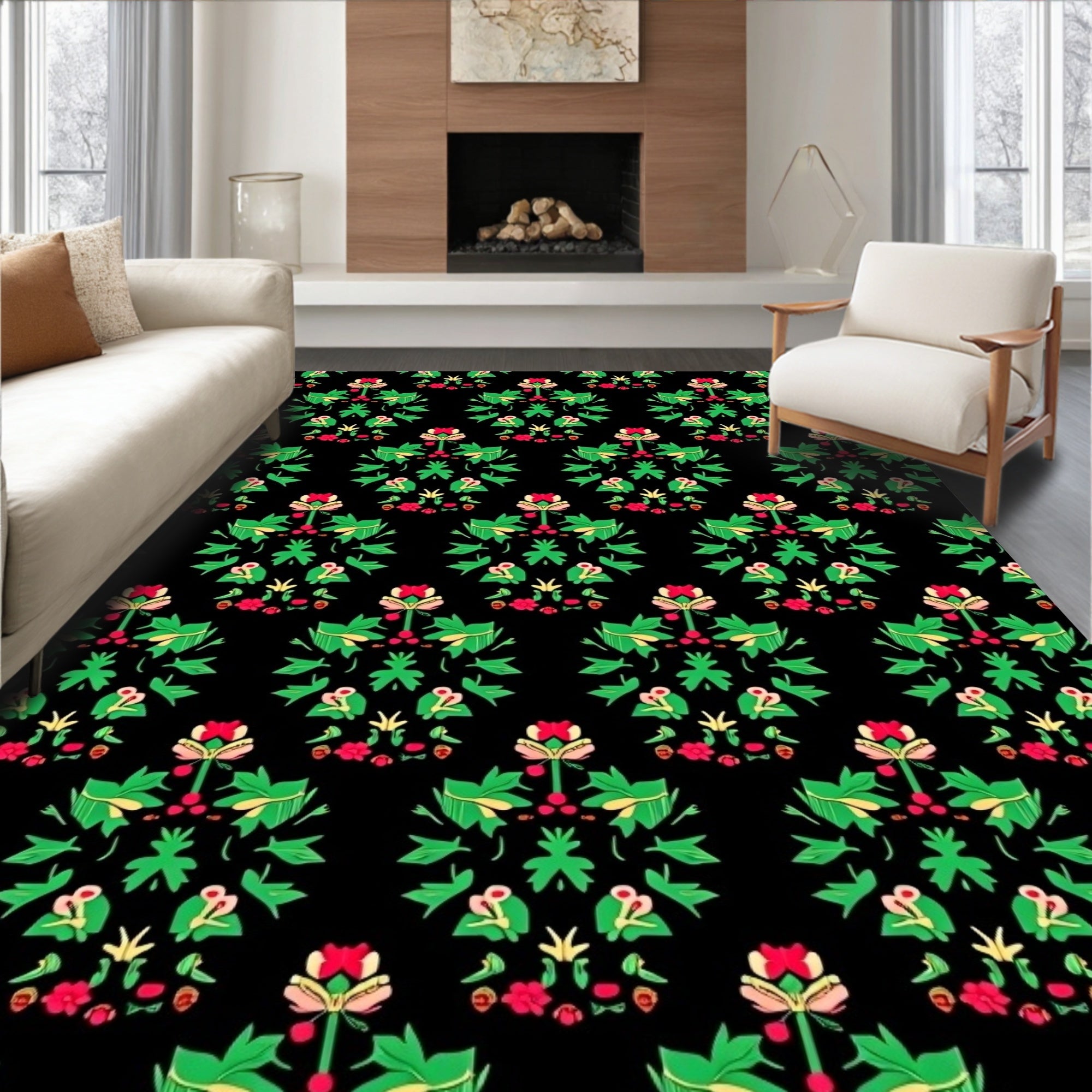 Flatwoven High Traffic Area Rug, Festive Holly Wreath with Traditional Motifs, Non Slip, Stain Resistant, Washable Area Rugs for Living Room, Bedroom (Black) Overview: