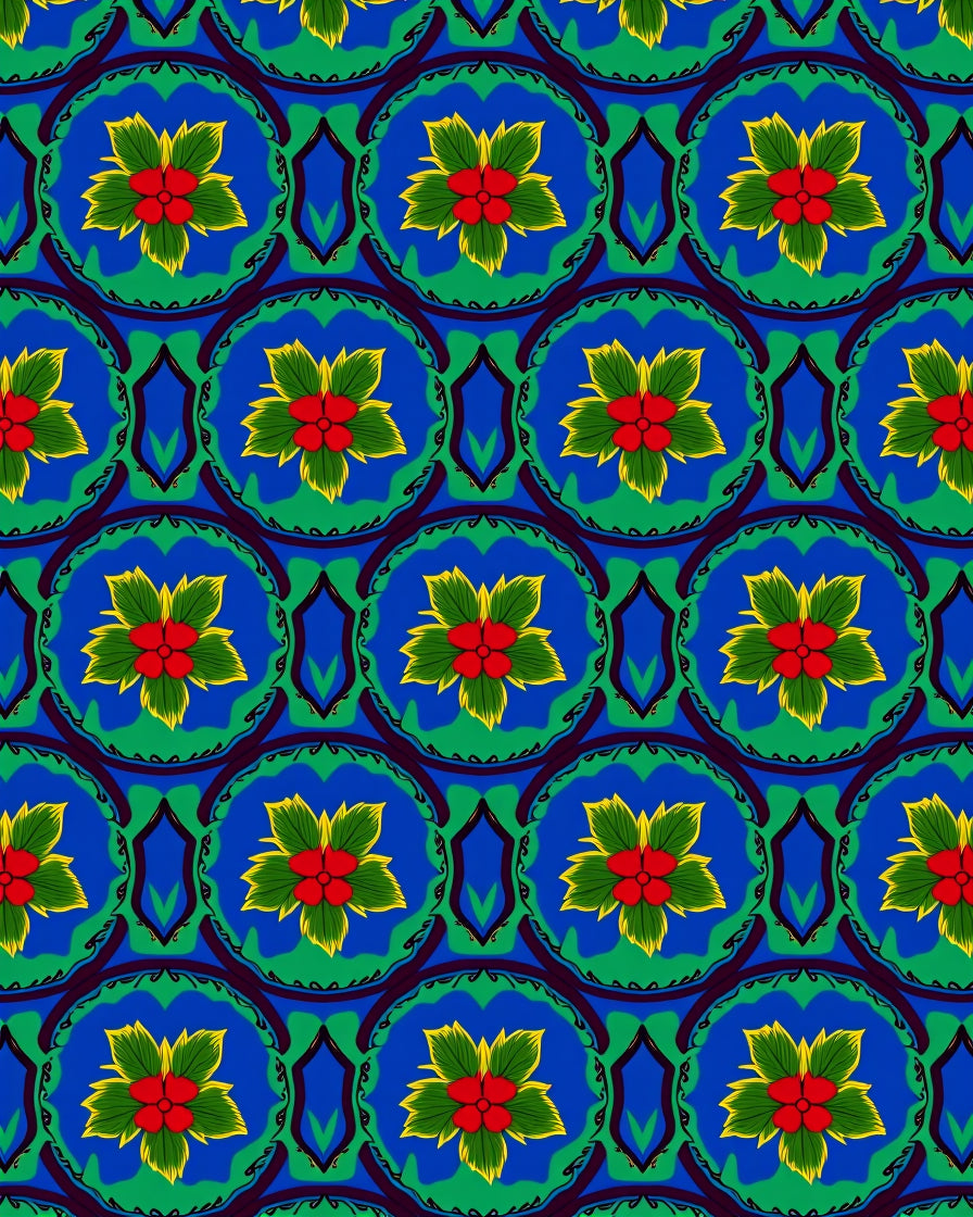 Festive Holly Wreath Shag with Interlocking Vine Motifs(Blue)