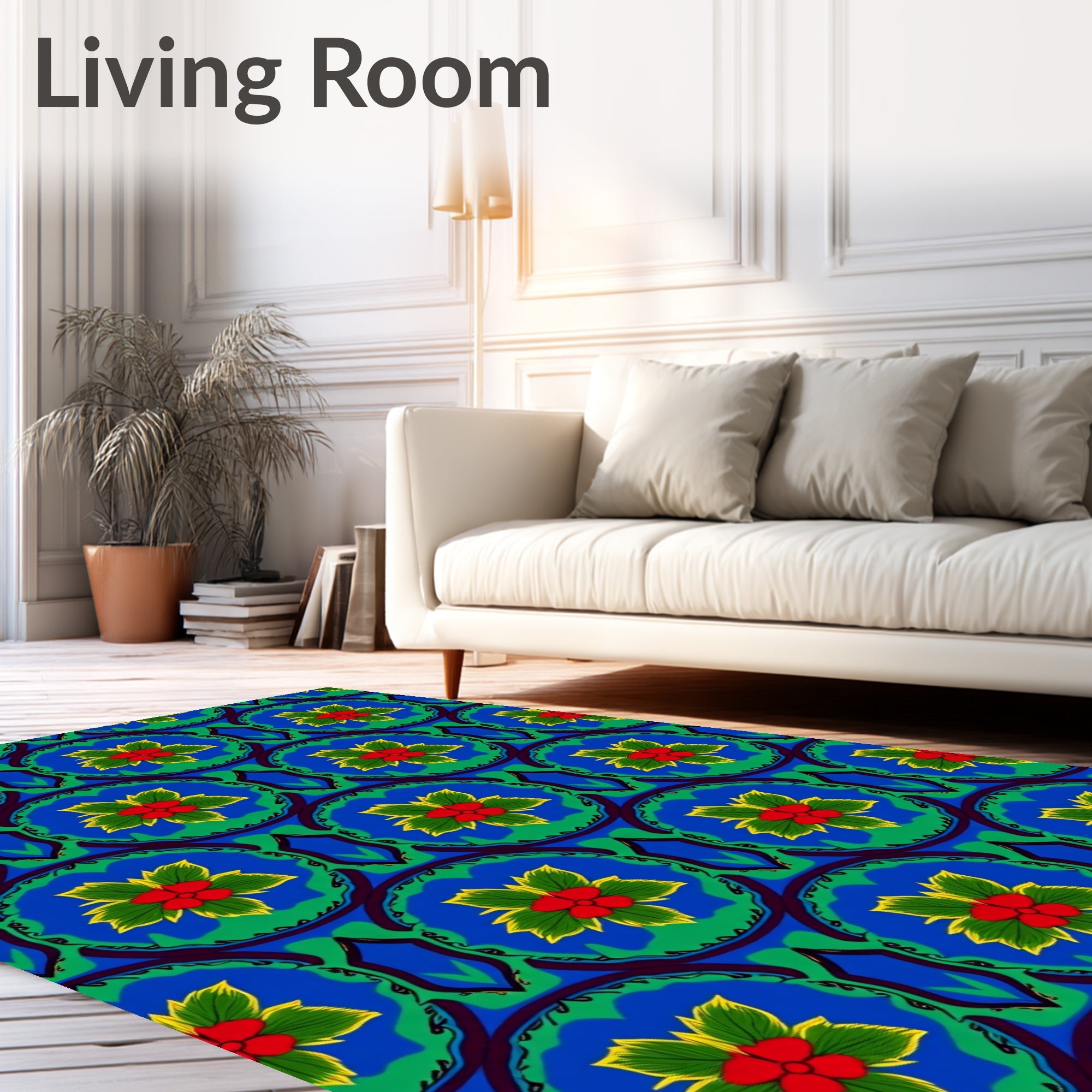 Flatwoven High Traffic Area Rug, Festive Holly Wreath Shag with Interlocking Vine Motifs, Non Slip, Stain Resistant, Washable Area Rugs for Living Room, Bedroom (Blue) Overview: